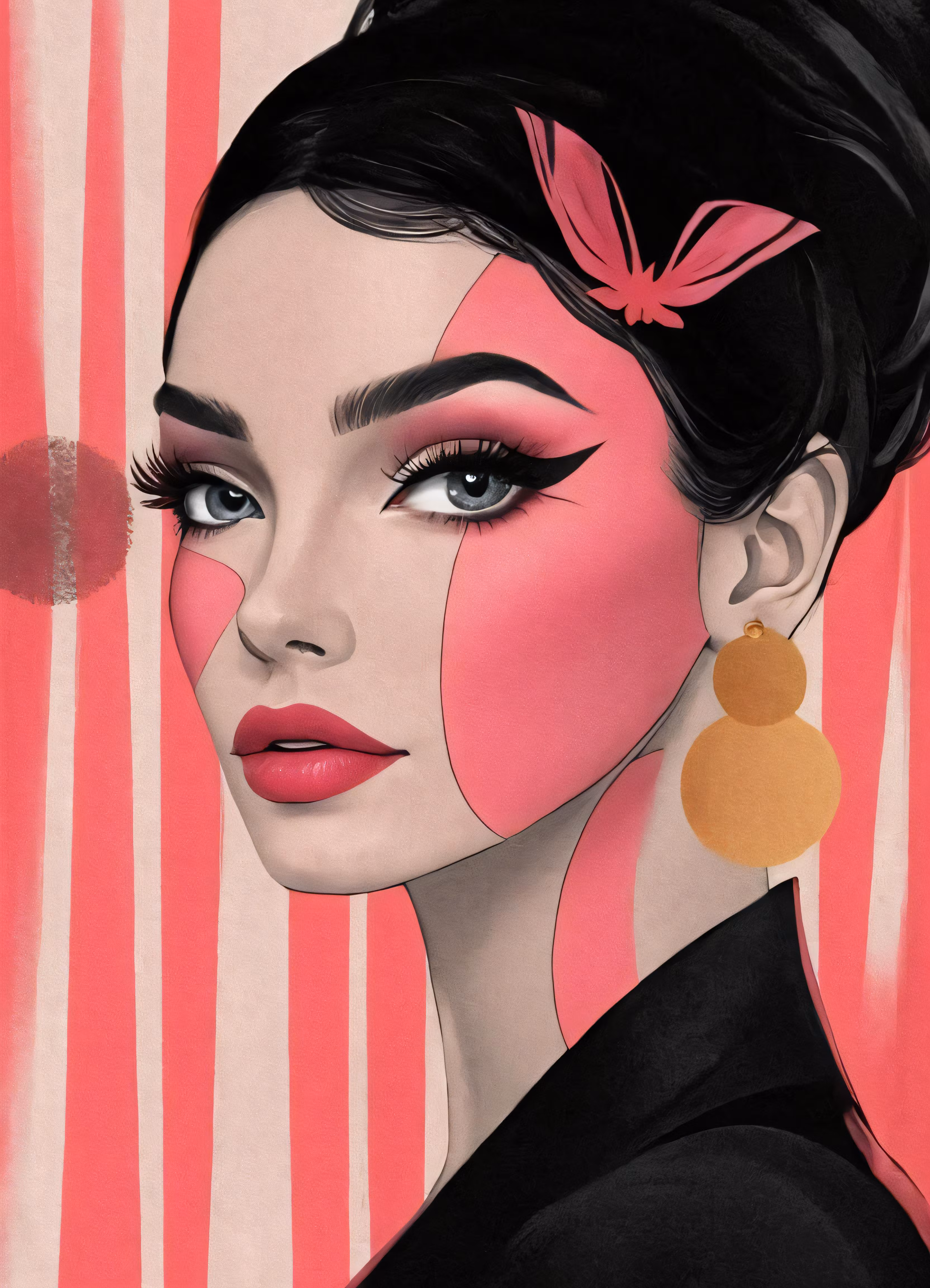 High resolution picture, free to use, a painting of a woman with pink paint on her face