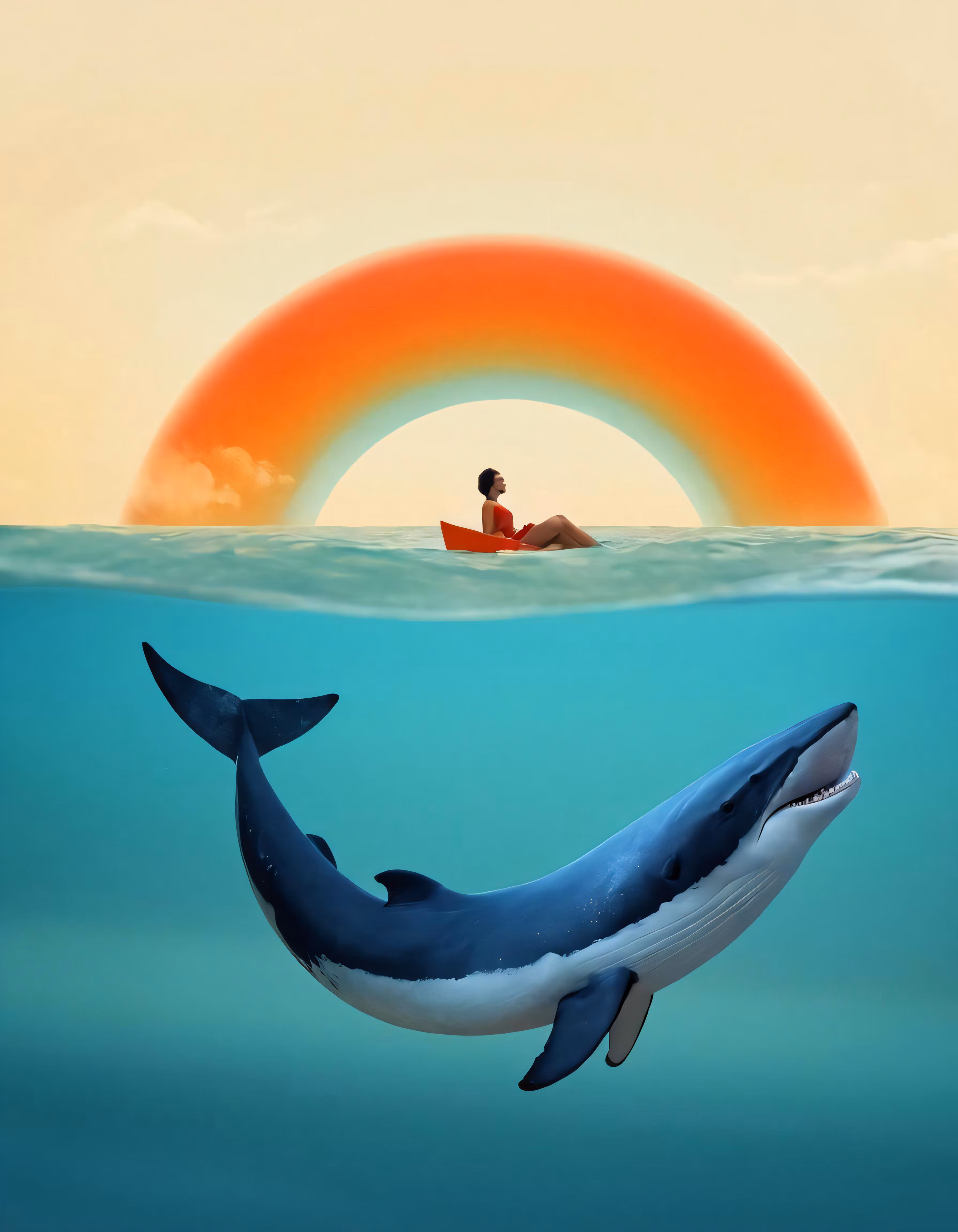 High resolution picture, free to use, a painting of an animal swimming in the ocean