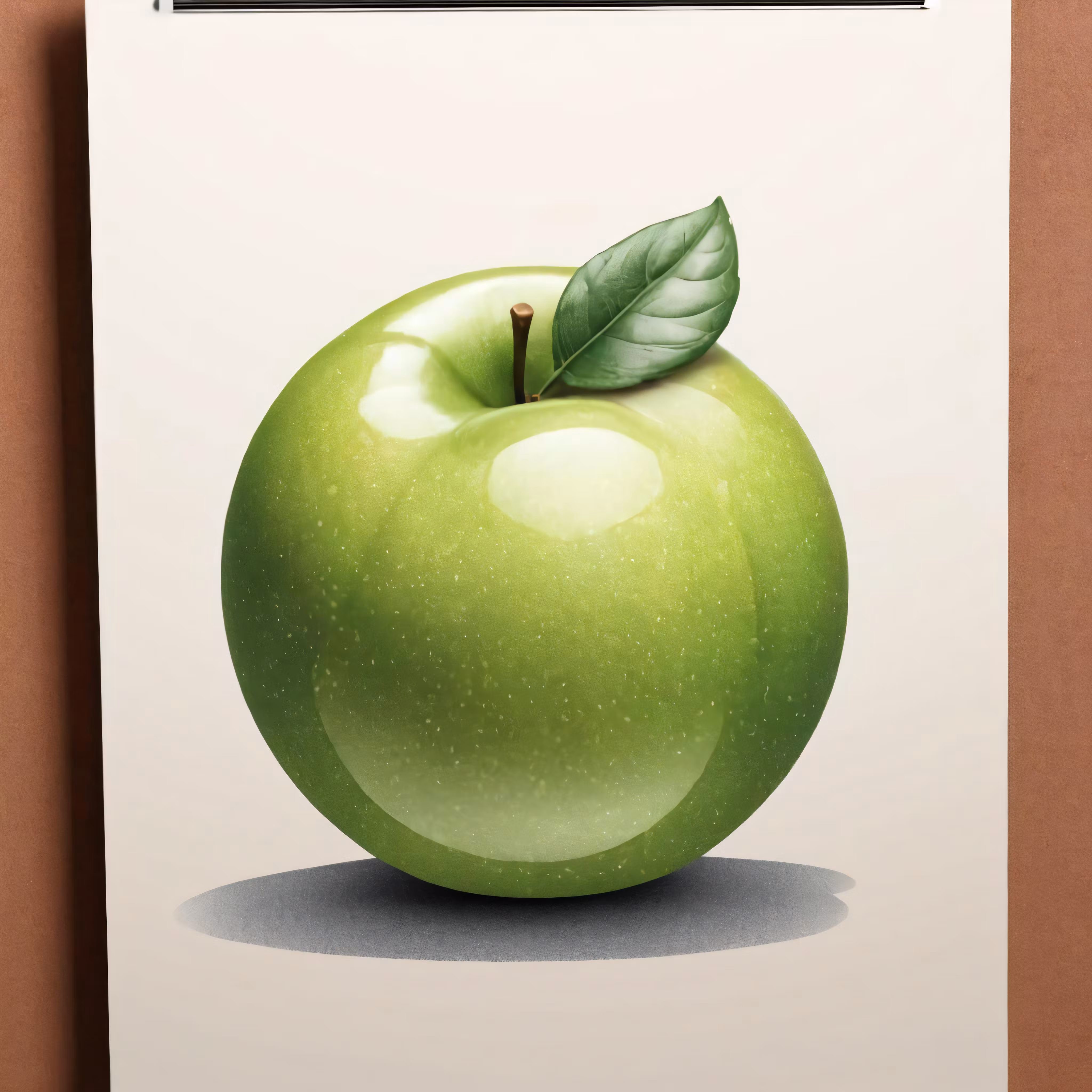 High resolution picture, free to use, a painting of an apple with green leaves on it