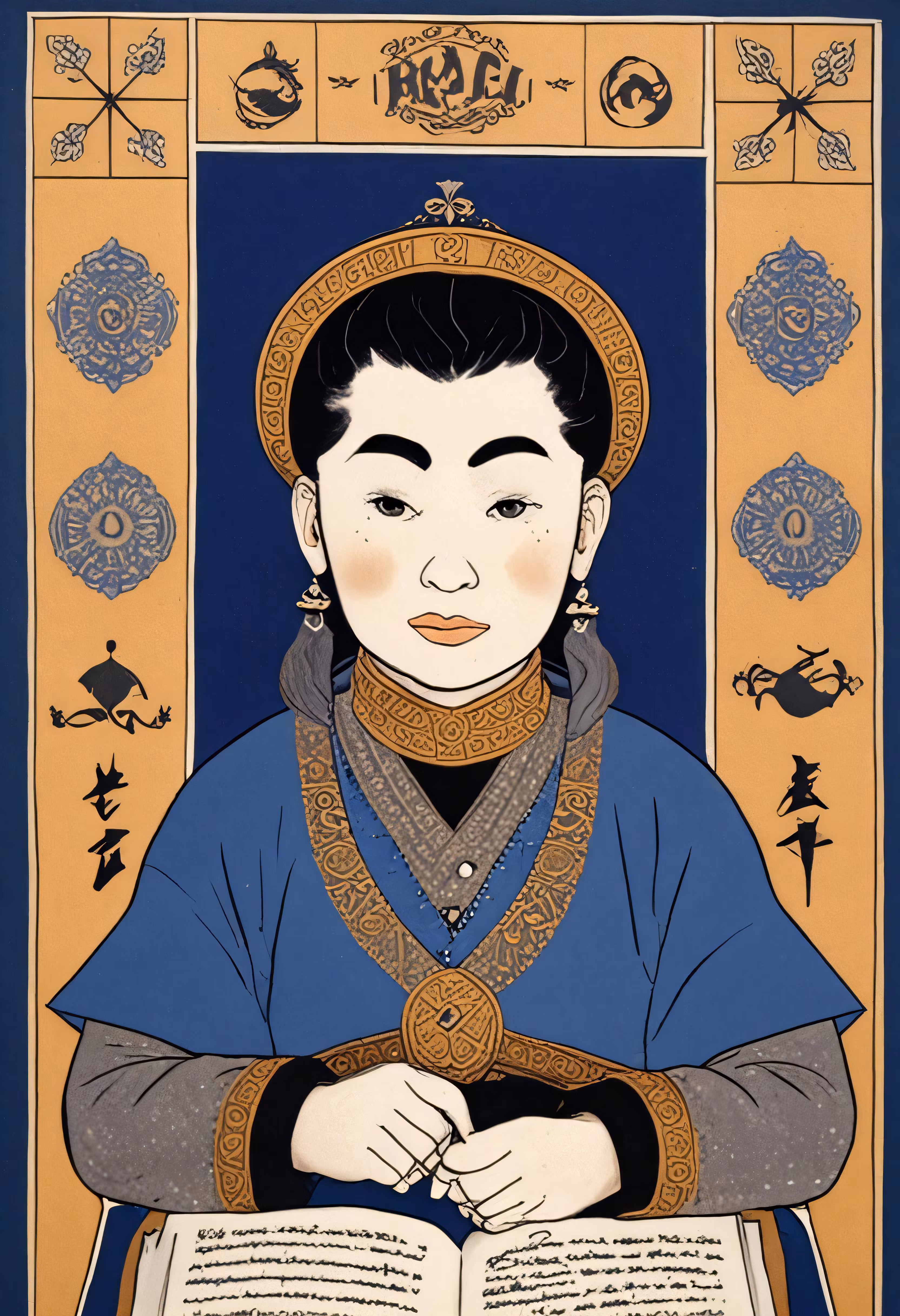 High resolution picture, free to use, a painting of an asian woman wearing an elaborate headdress