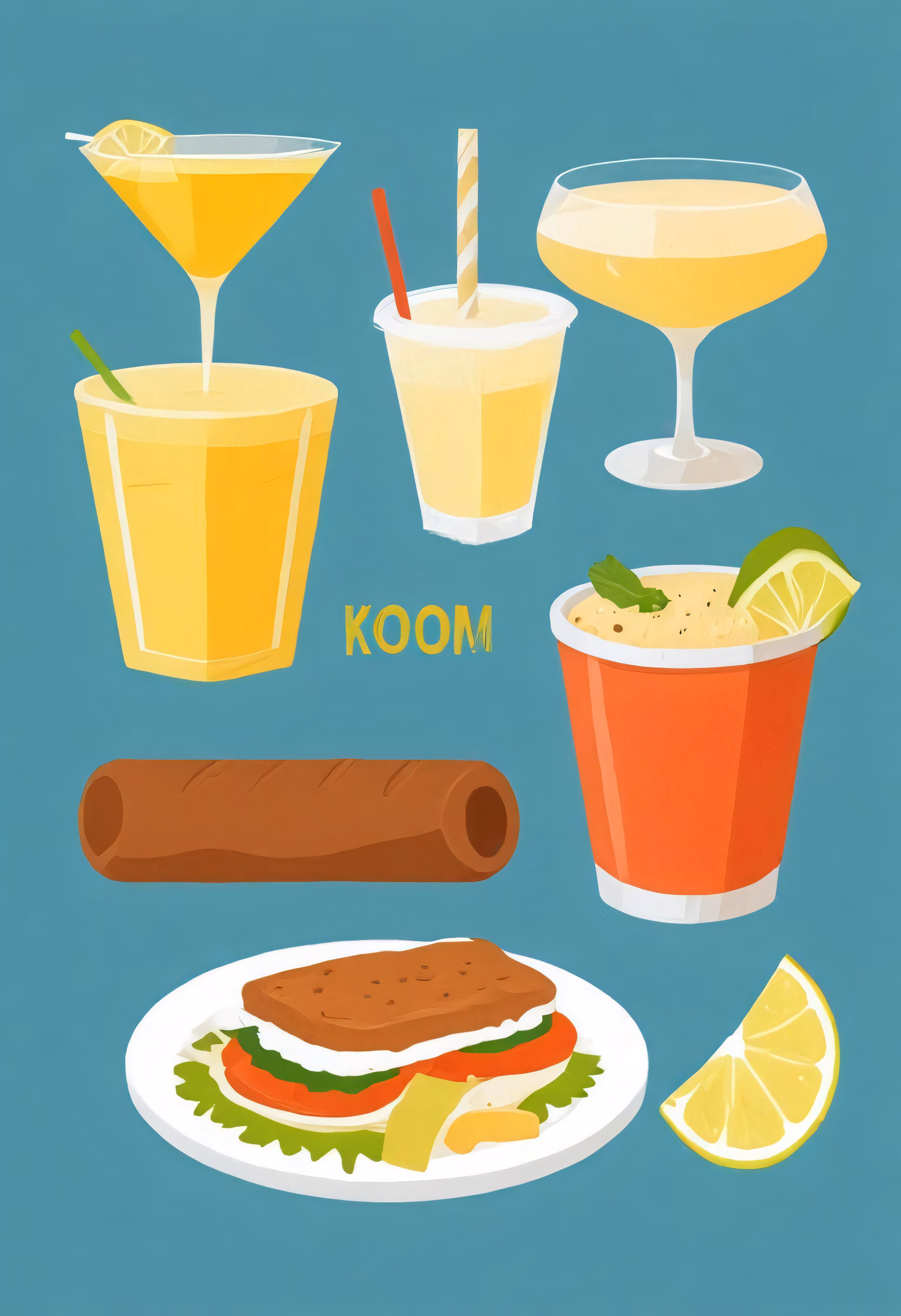 High resolution picture, free to use, a painting of food, drinks and a drink