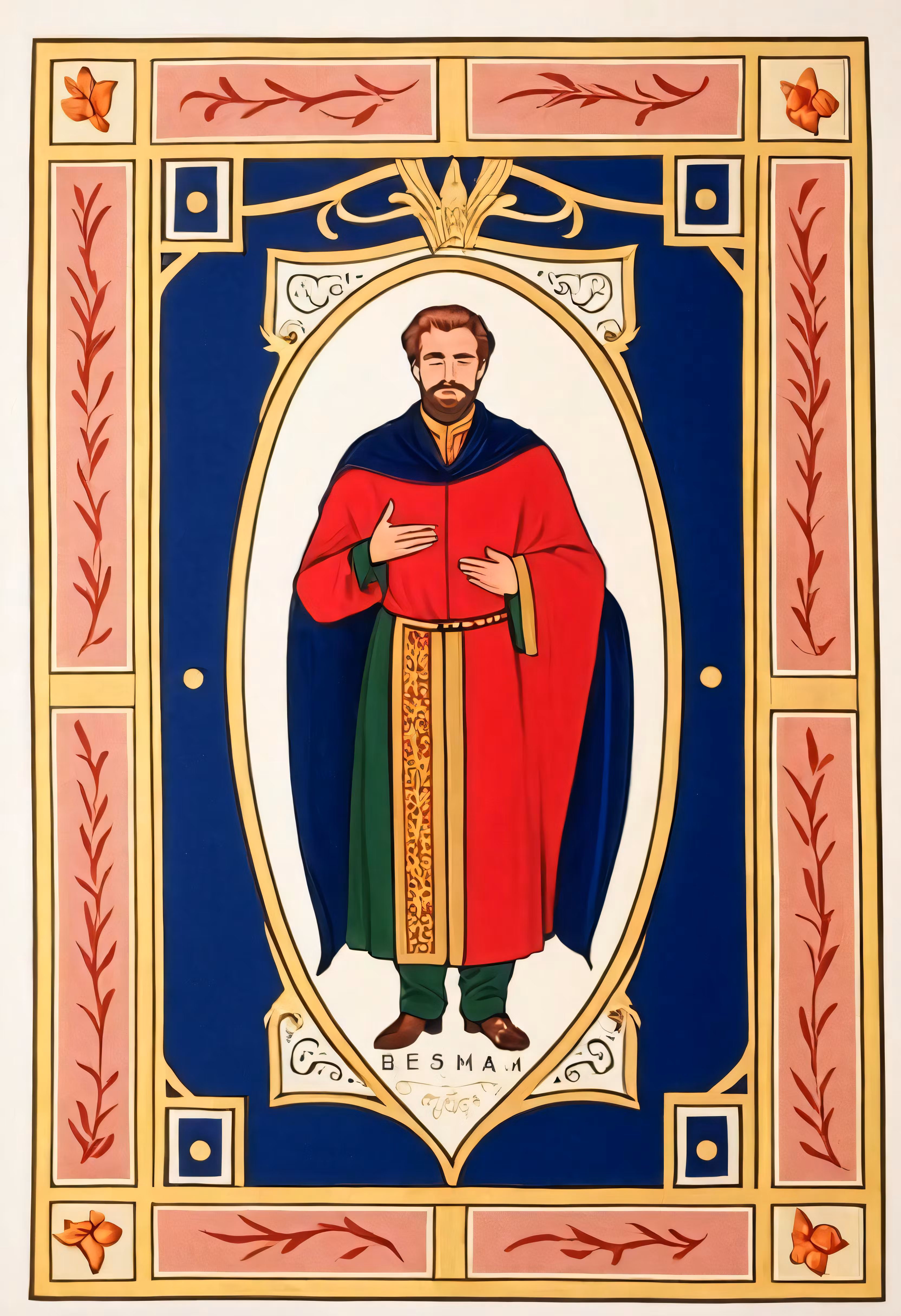 High resolution picture, free to use, a painting of jesus wearing a mantle and holding a cross