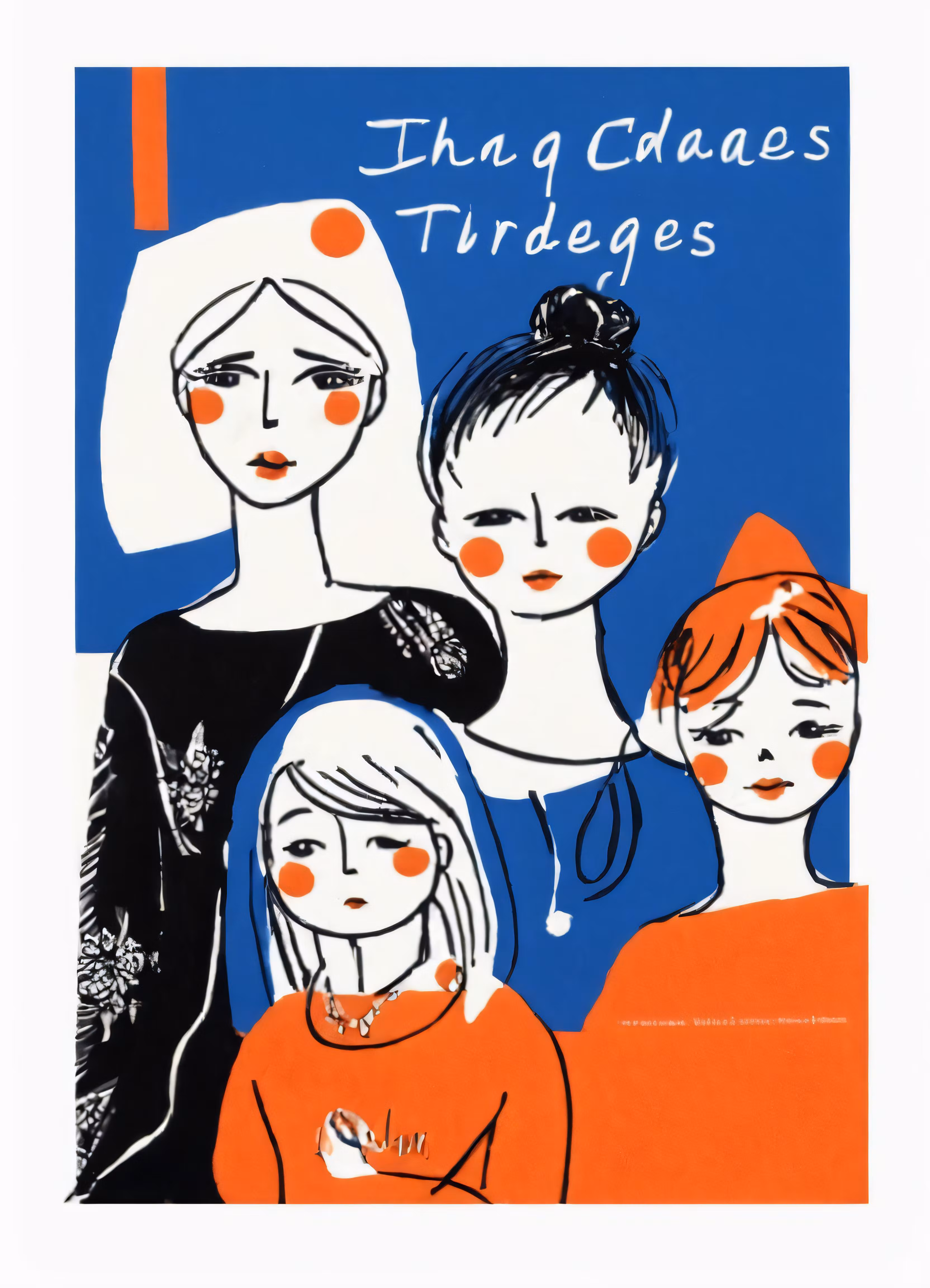 High resolution picture, free to use, a painting of people with the words three chases tidges