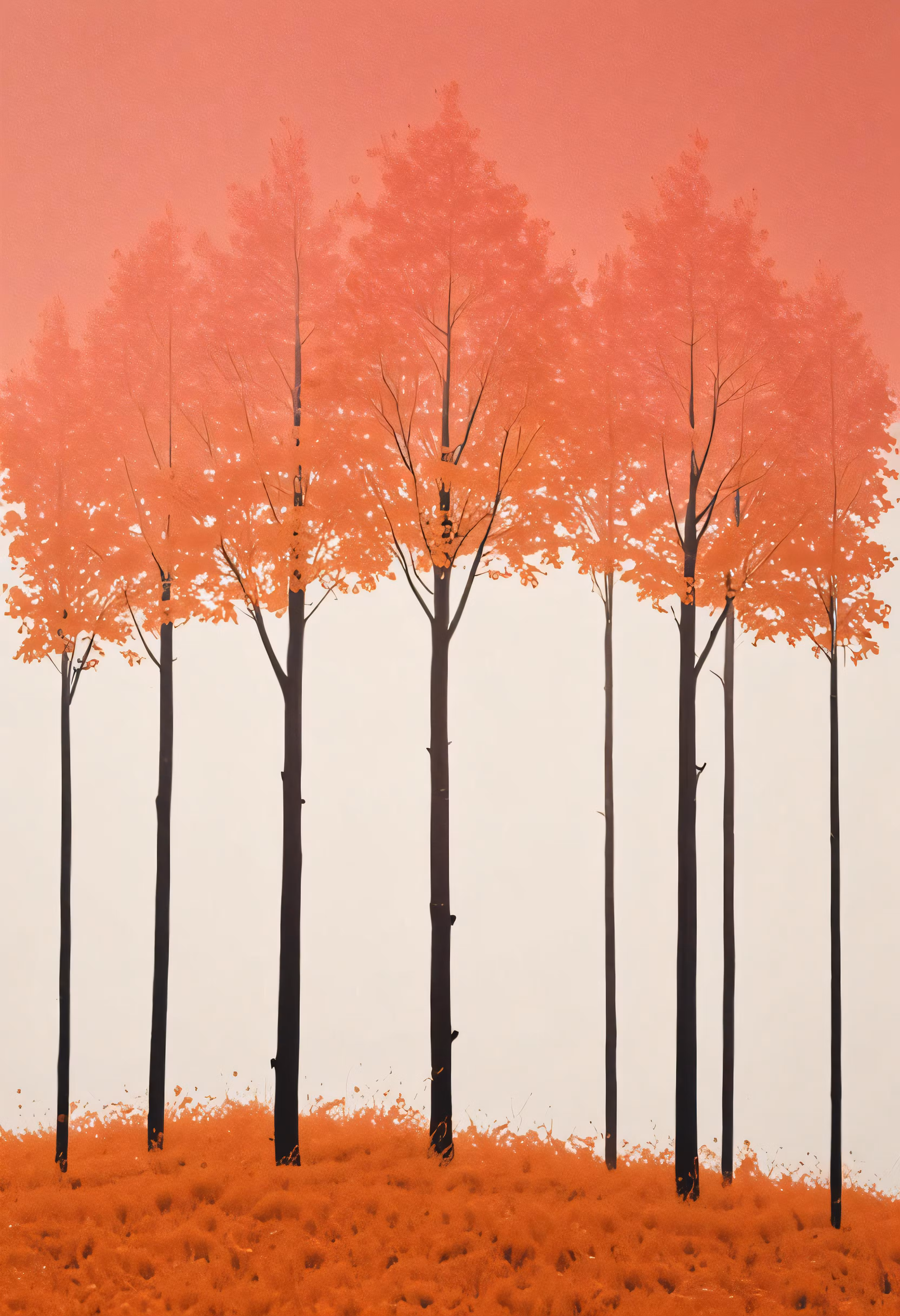 High resolution picture, free to use, a painting of trees with their leaves turning orange