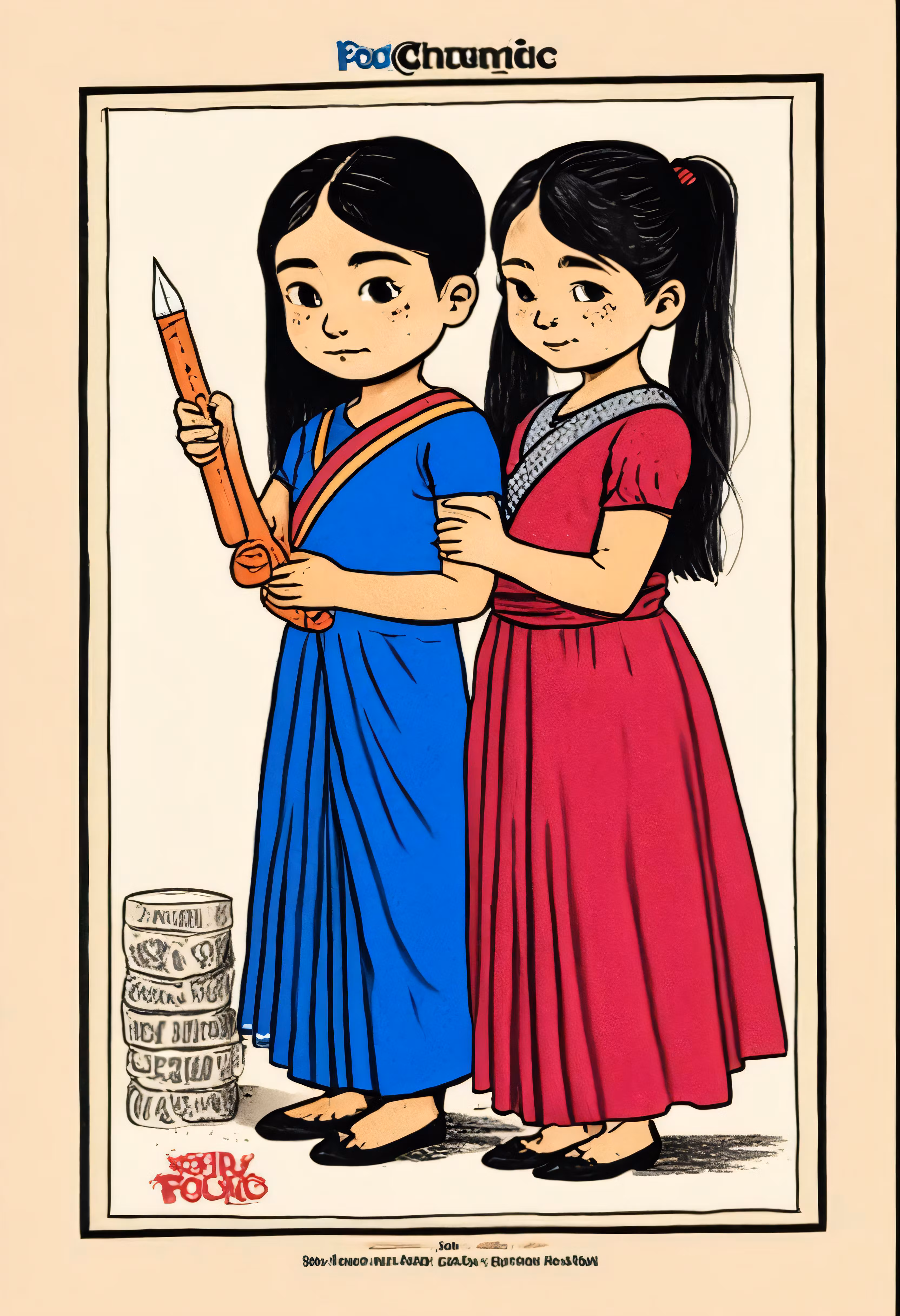 High resolution picture, free to use, a painting of two children in the cover of a magazine