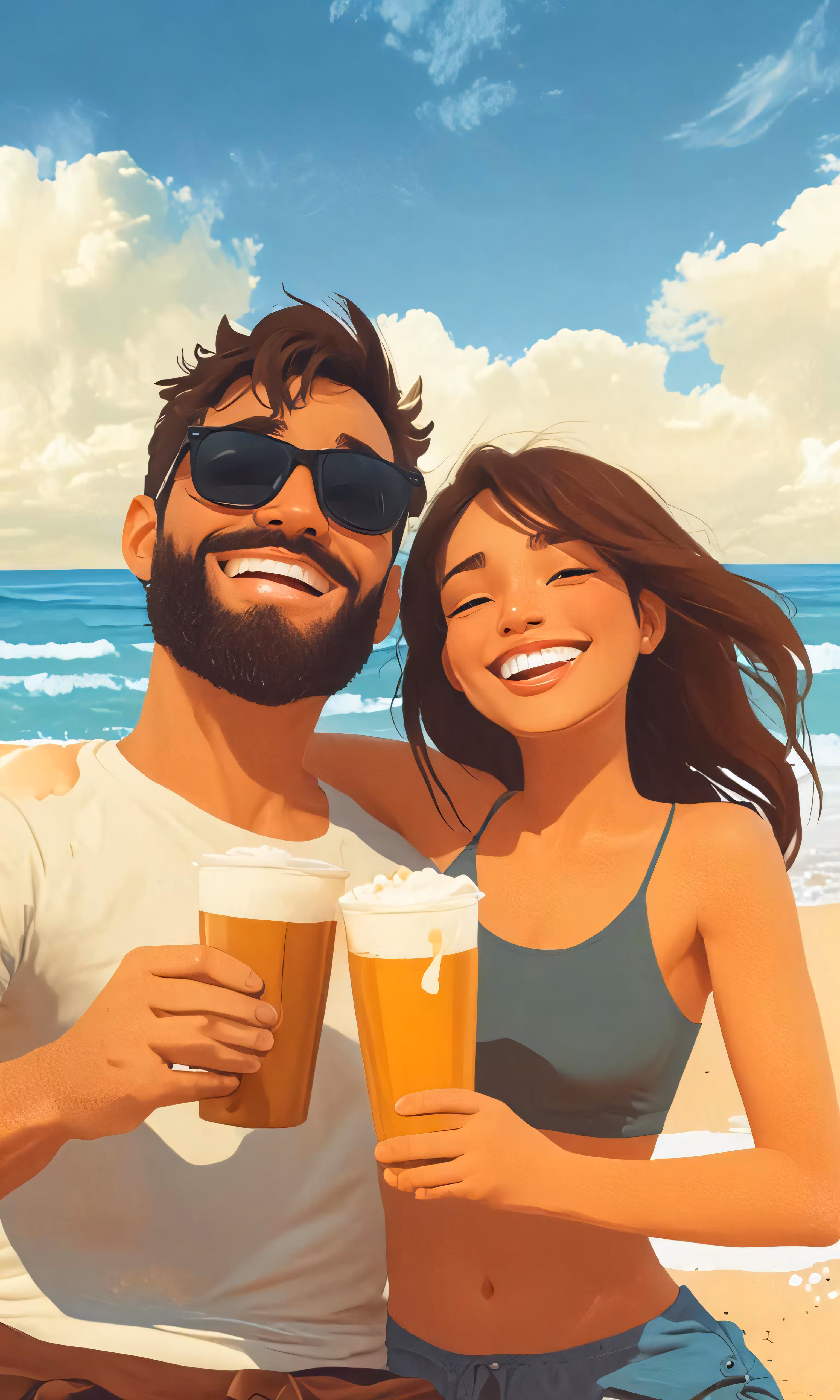 High resolution picture, free to use, a painting of two people drinking on the beach