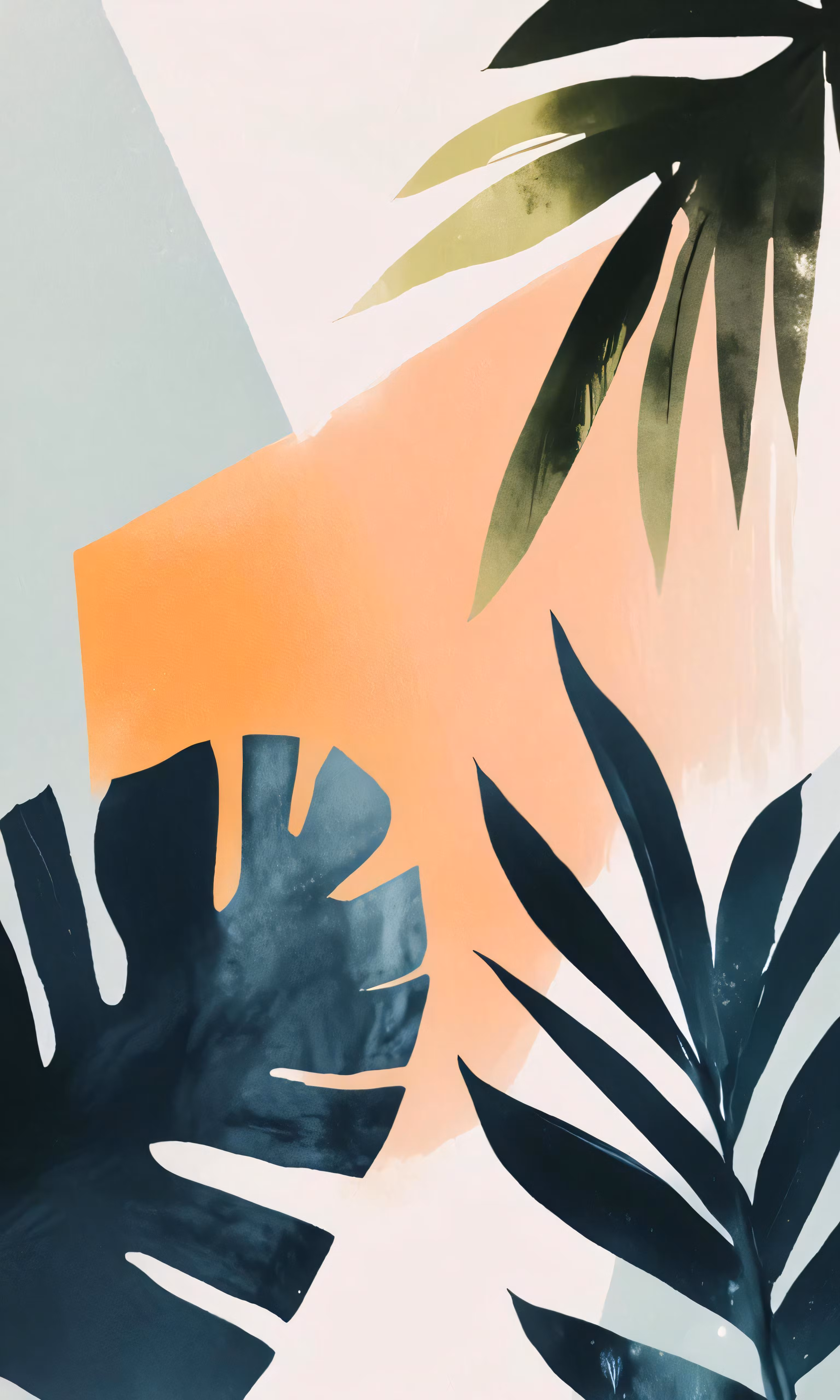 High resolution picture, free to use, a painting that looks like it is painted with tropical leaves