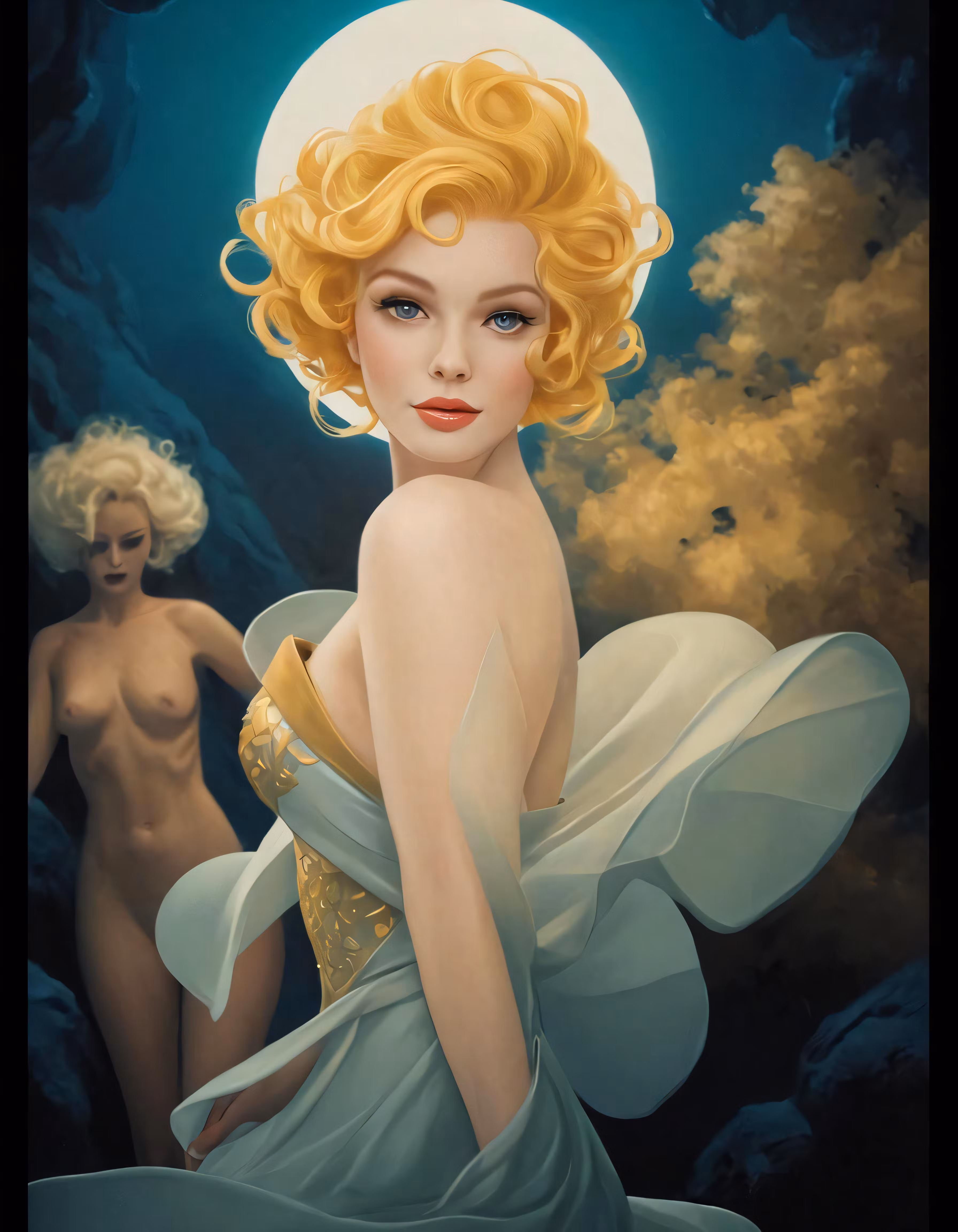 High resolution picture, free to use, a painting with a woman dressed like a fairy
