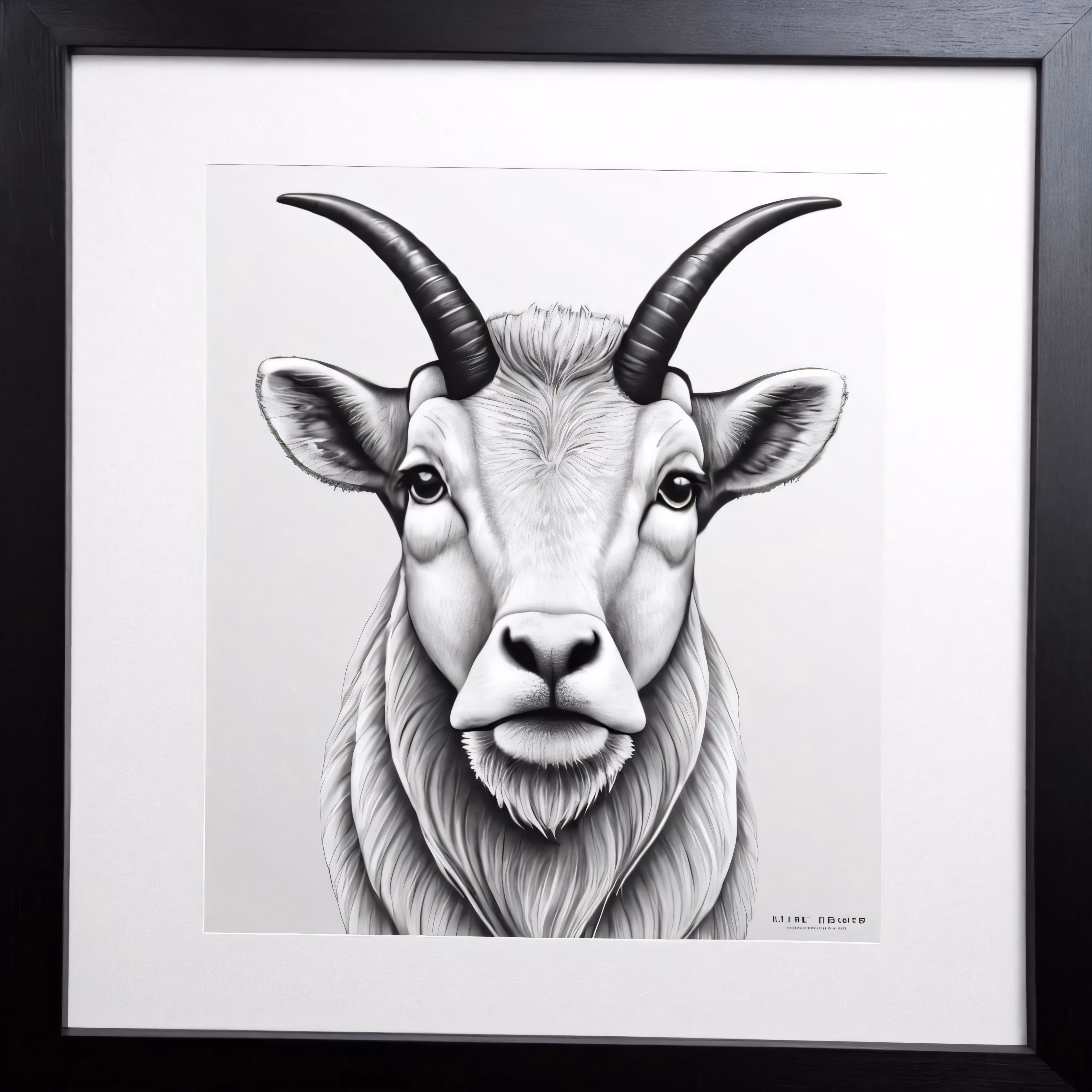High resolution picture, free to use, a painting with an animal head in a black frame
