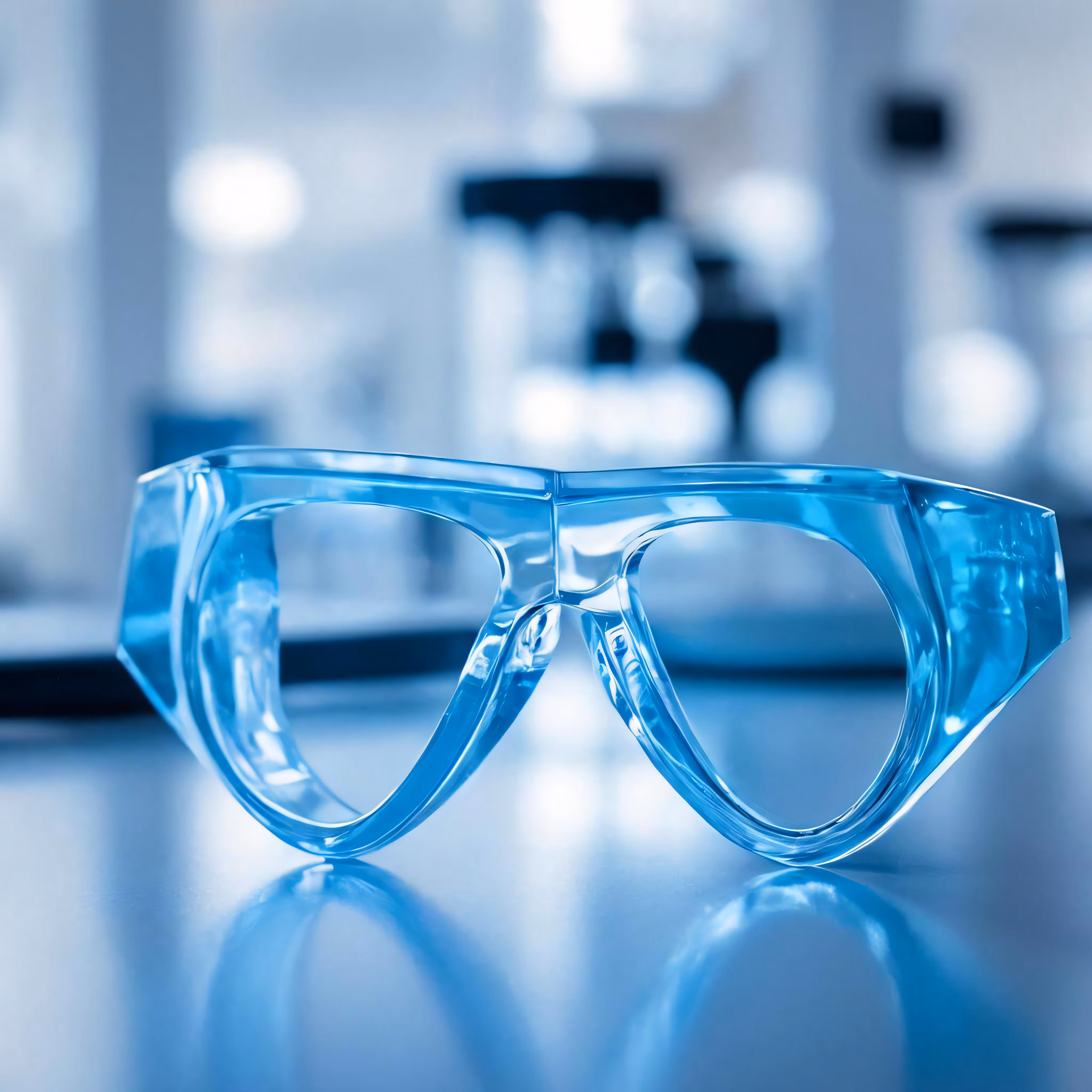High resolution picture, free to use, a pair of blue tinted glasses on a table