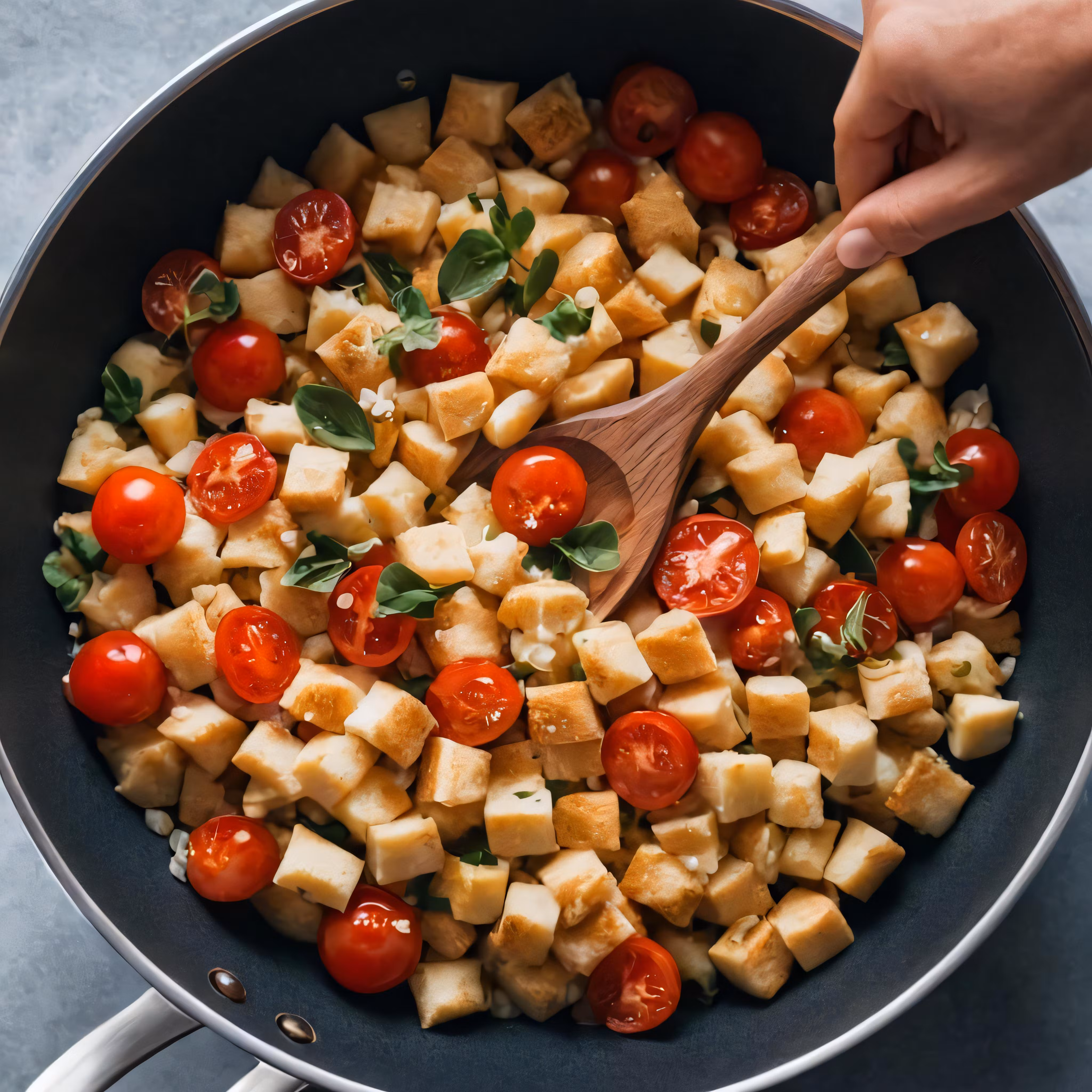 High resolution picture, free to use, a pan filled with chopped tofu and tomatoes