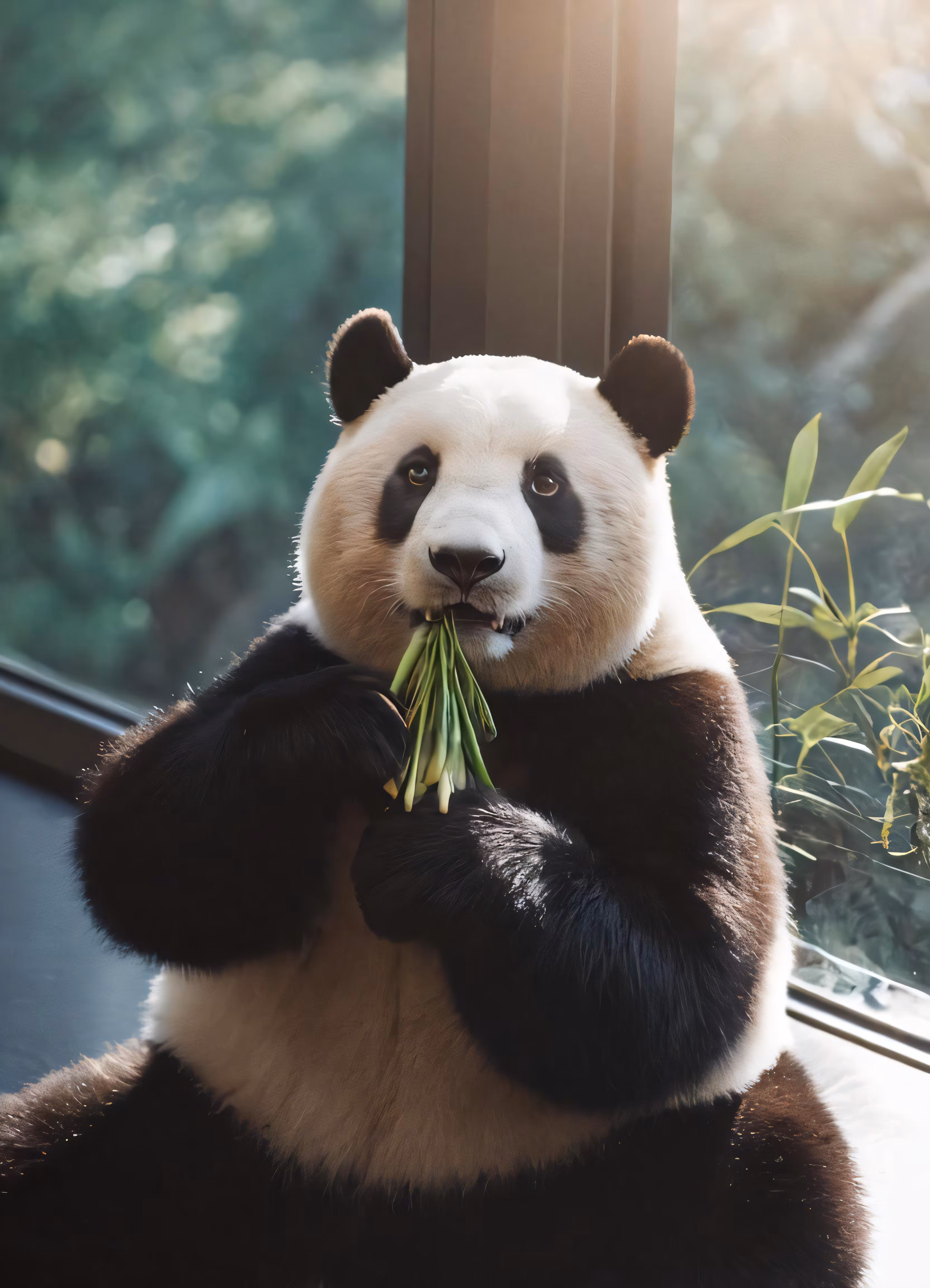 High resolution picture, free to use, a panda bear eating a bunch of bamboo