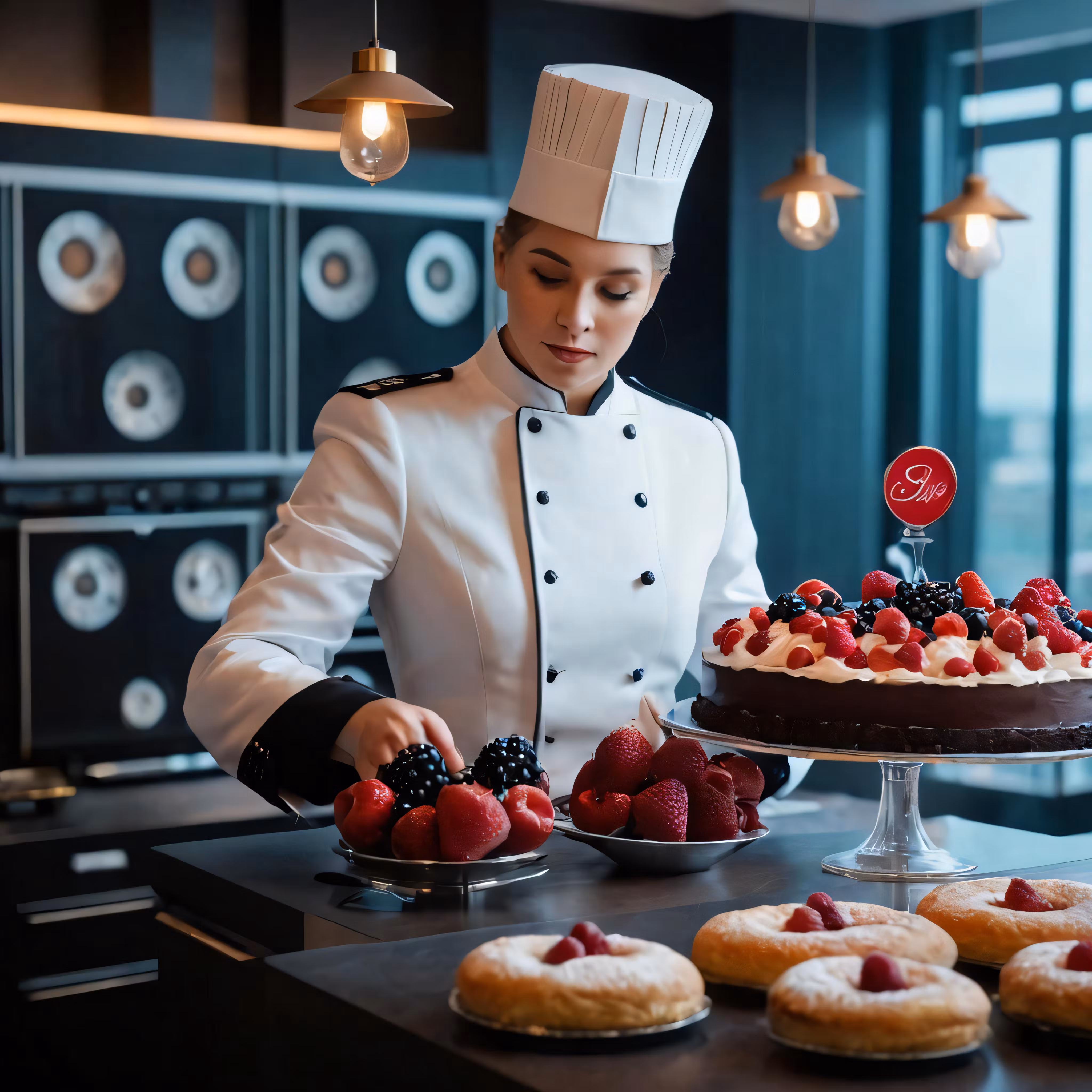High resolution picture, free to use, a pastry chef decorating a dessert table