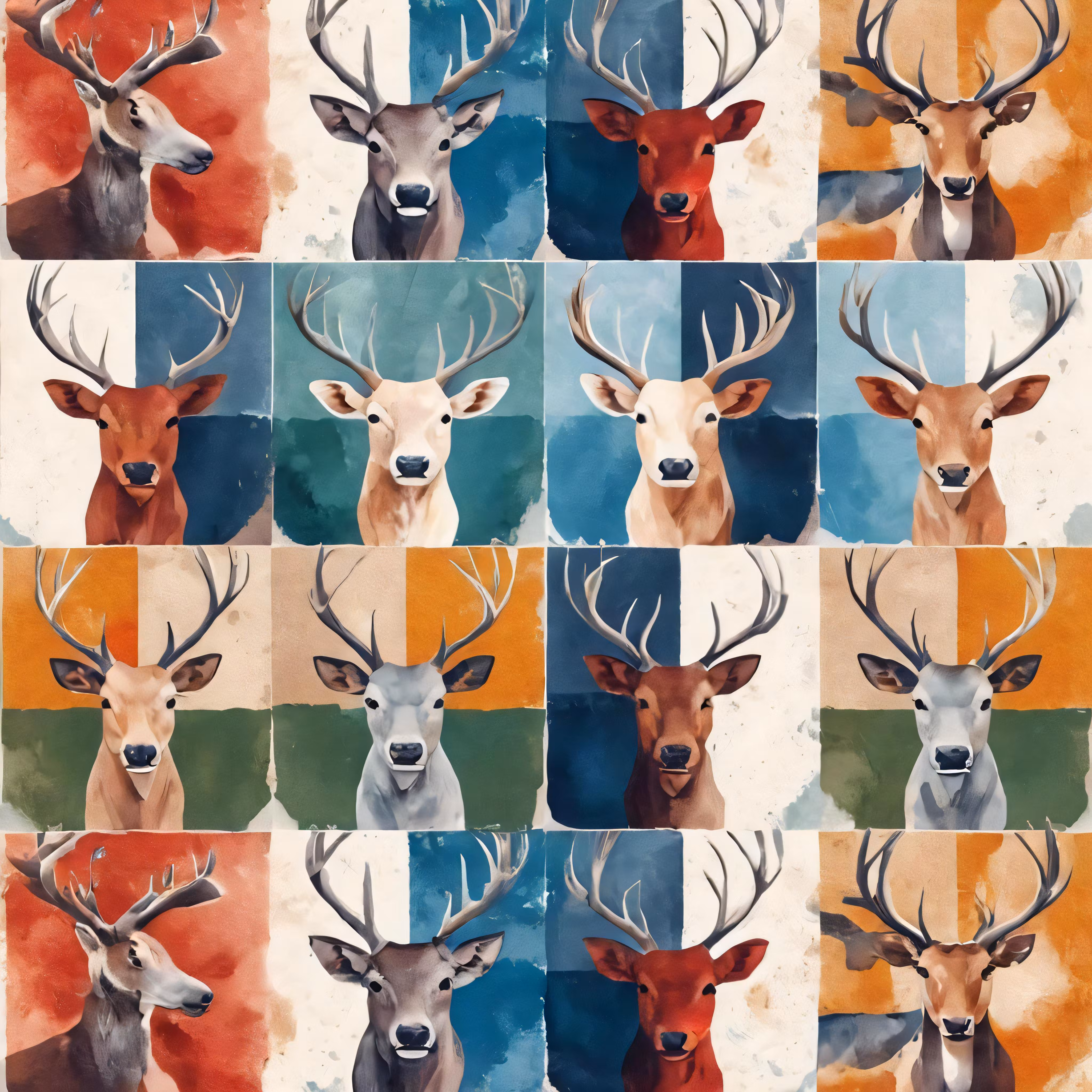 High resolution picture, free to use, a pattern of deer faces is shown on a colorful background
