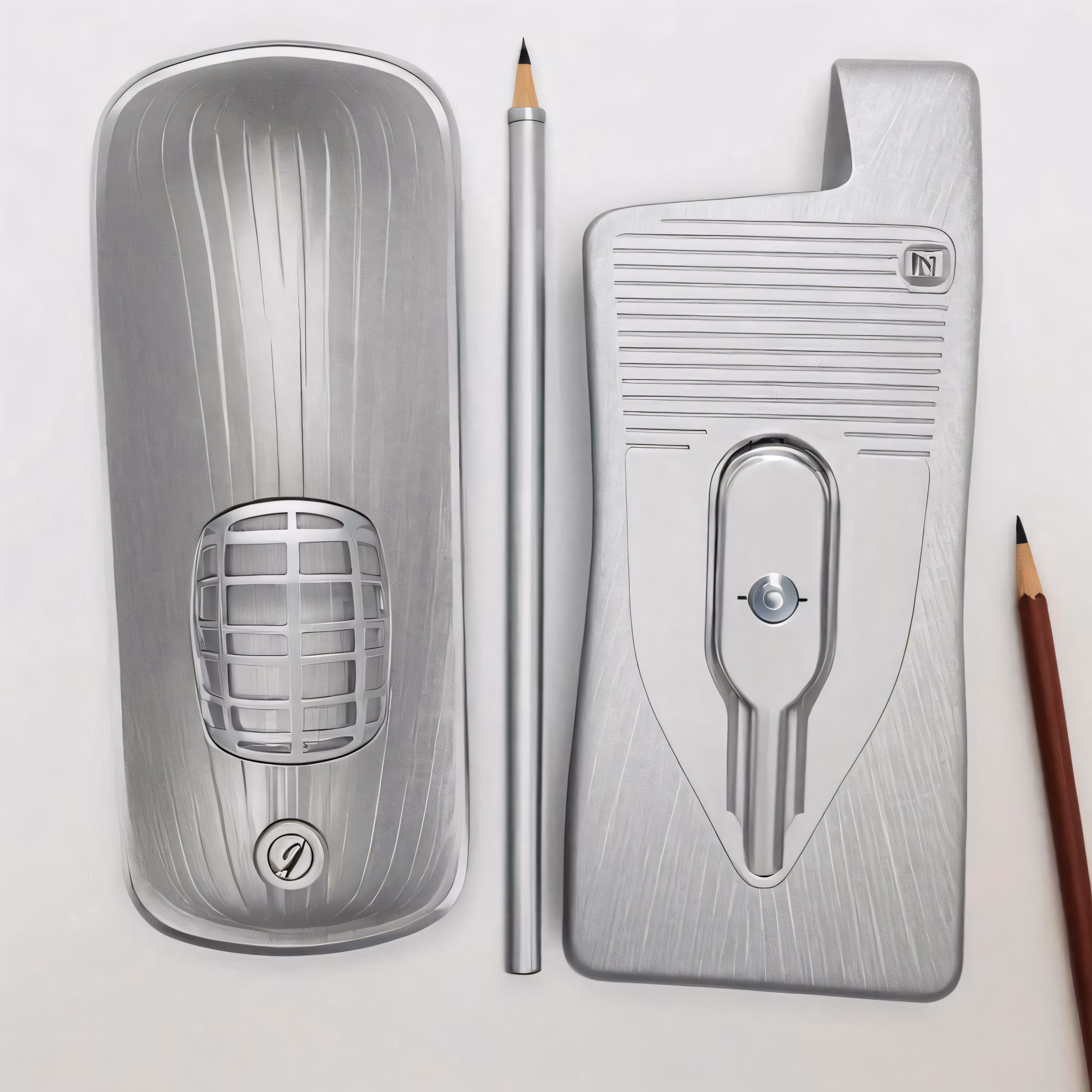 High resolution picture, free to use, a pencil and a drawing of a set of microphones