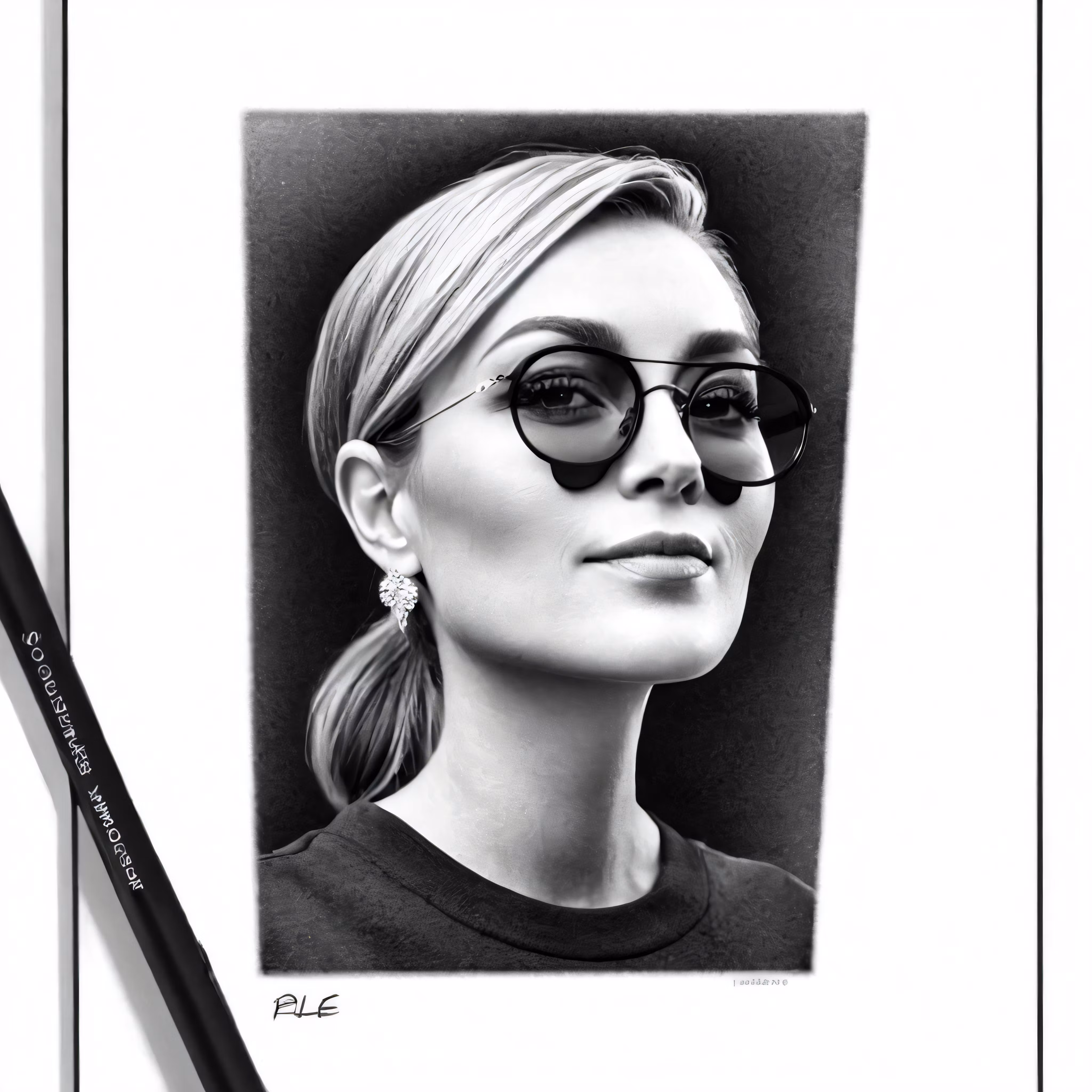 High resolution picture, free to use, a pencil drawing of a female wearing glasses