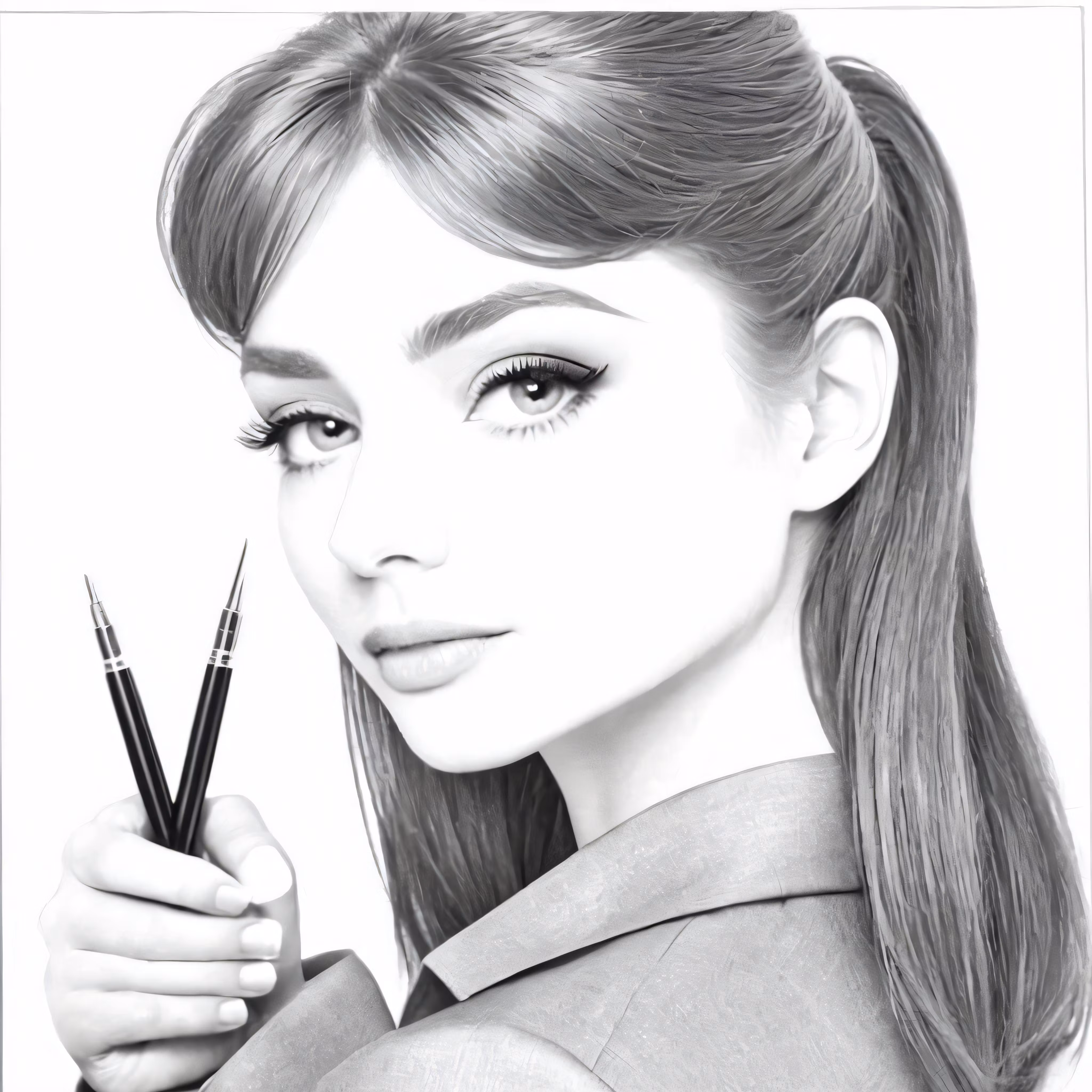 High resolution picture, free to use, a pencil drawing of a girl in a dress