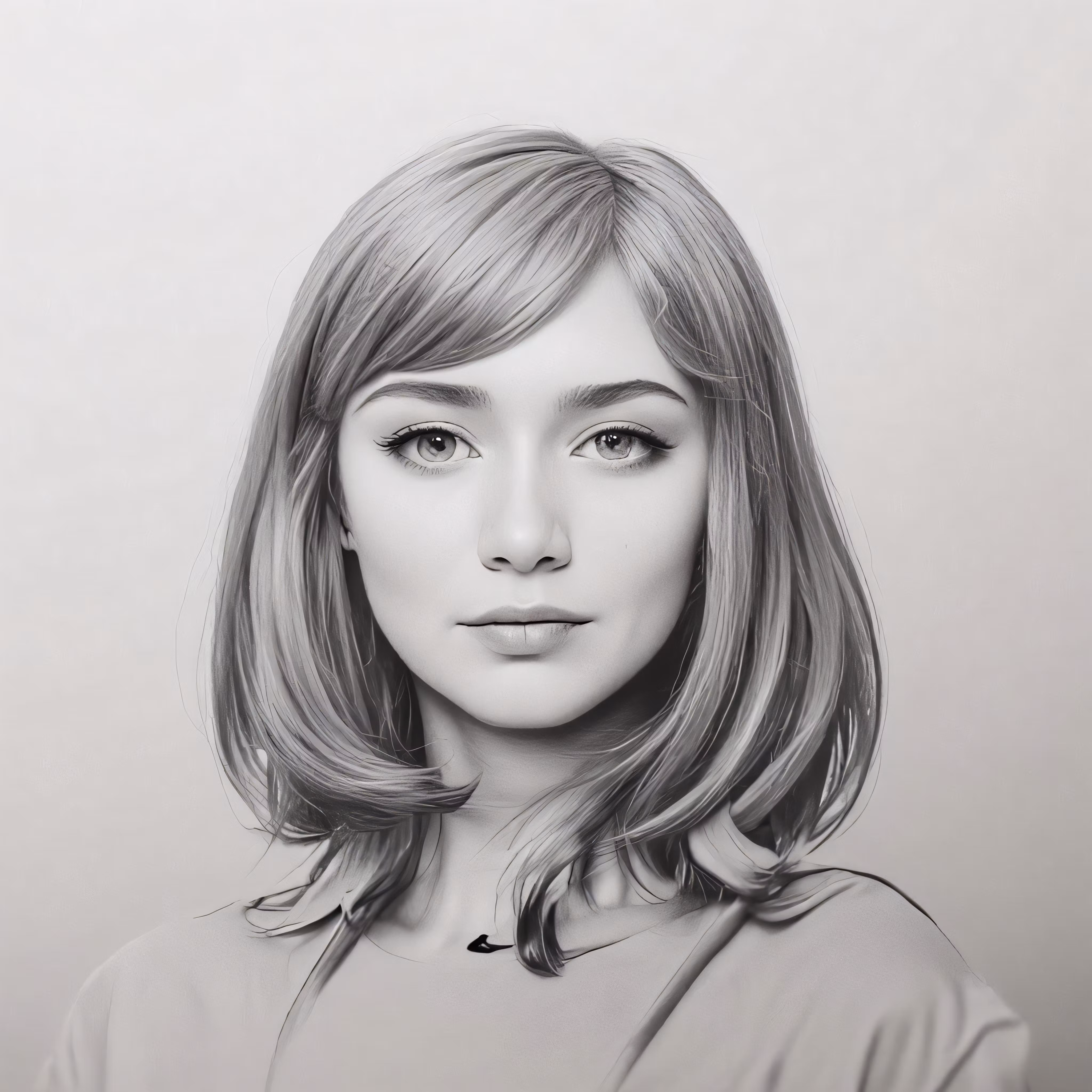 High resolution picture, free to use, a pencil drawing of a girl with bangs