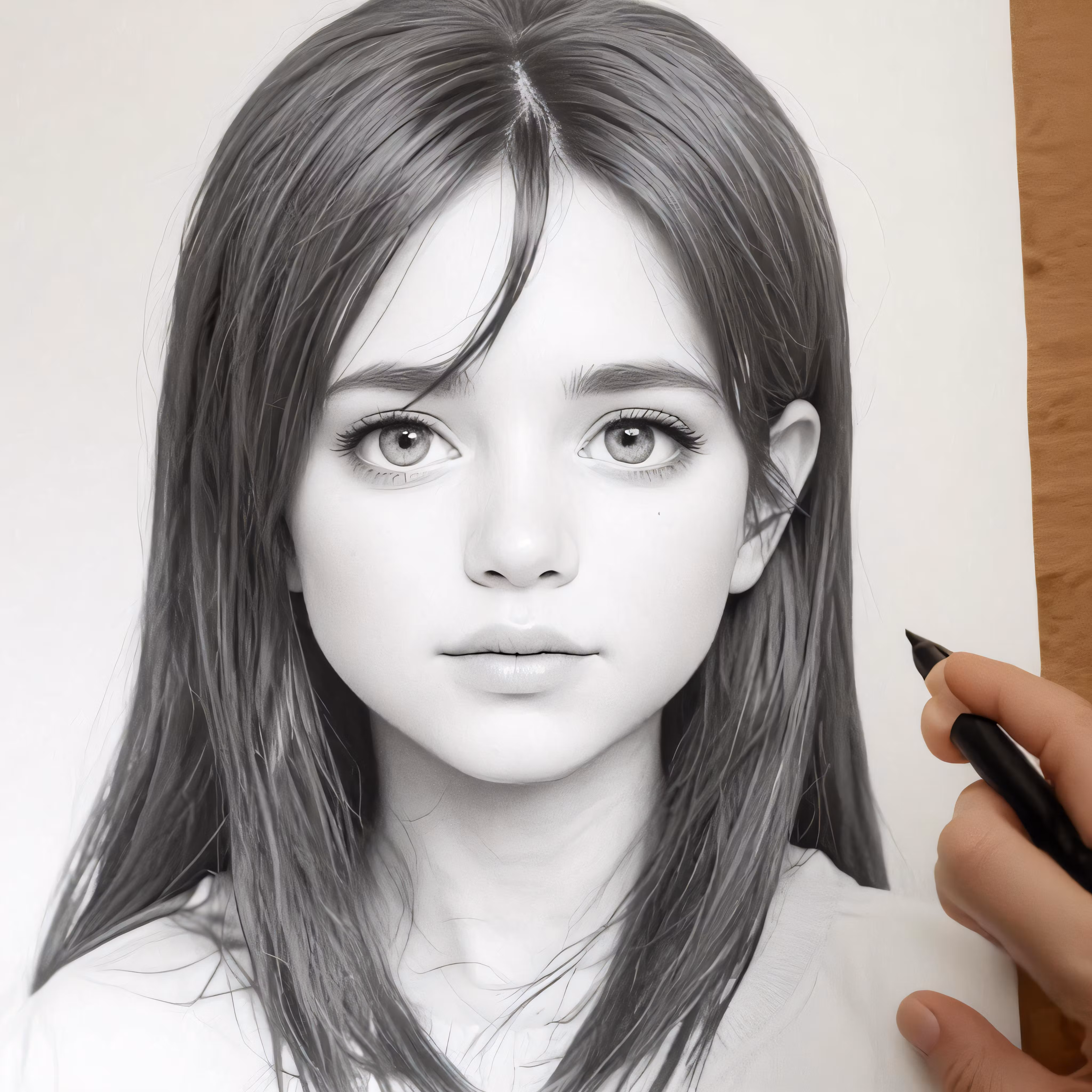 High resolution picture, free to use, a pencil drawing of a girl with big eyes