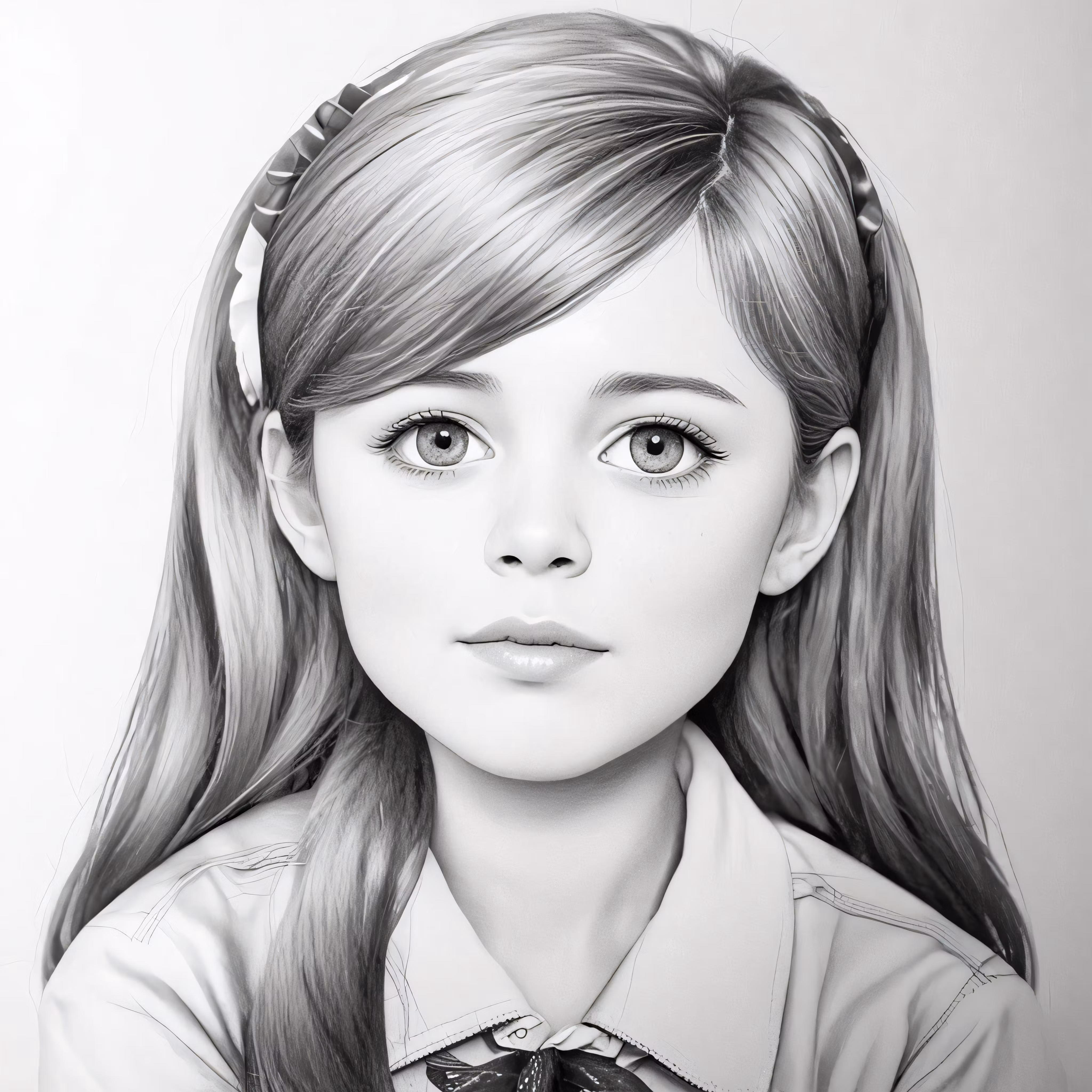 High resolution picture, free to use, a pencil drawing of a girl with long hair