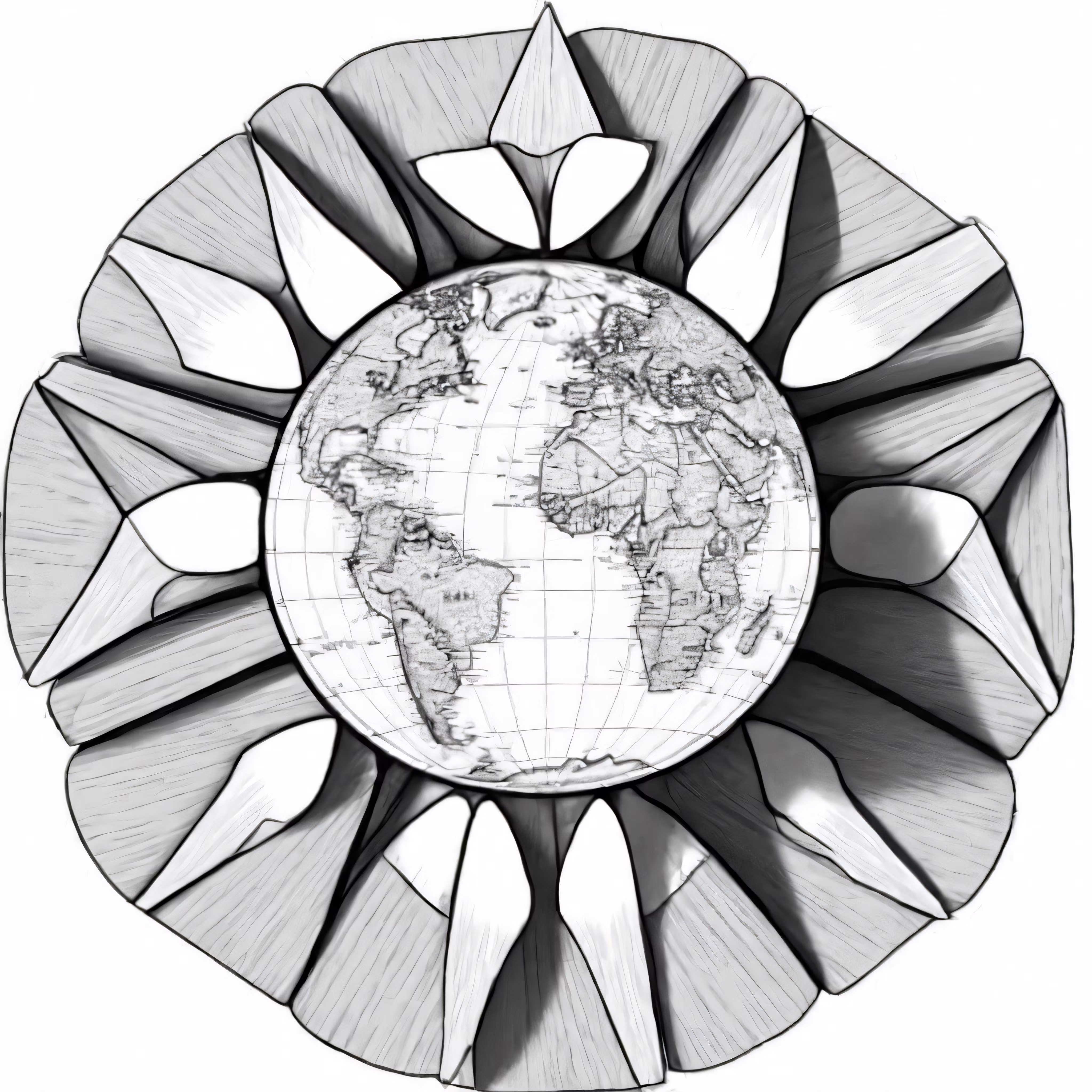 High resolution picture, free to use, a pencil drawing of a globe in the center of the circle