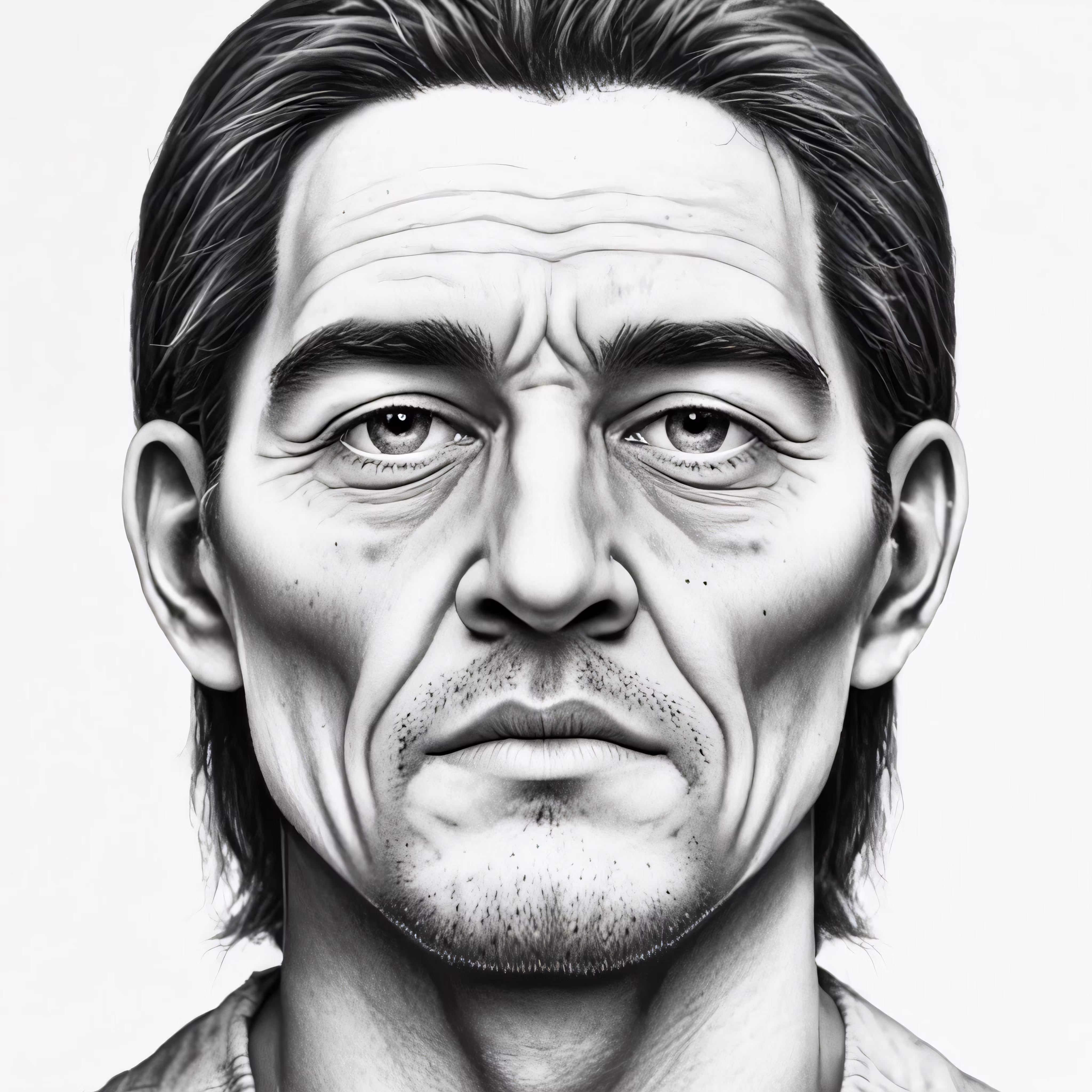 High resolution picture, free to use, a pencil drawing of a man with a serious expression