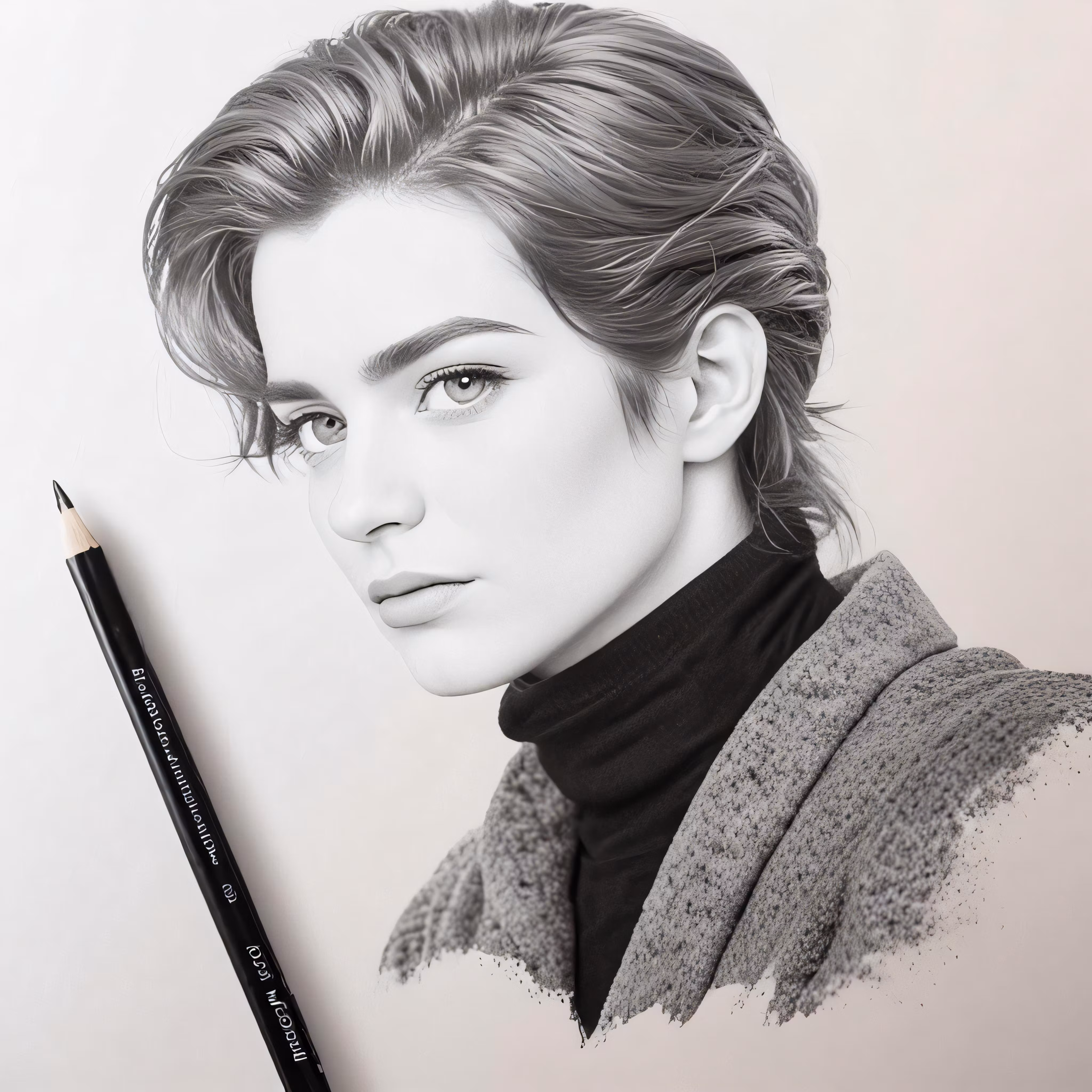 High resolution picture, free to use, a pencil drawing of a woman in a sweater with long hair