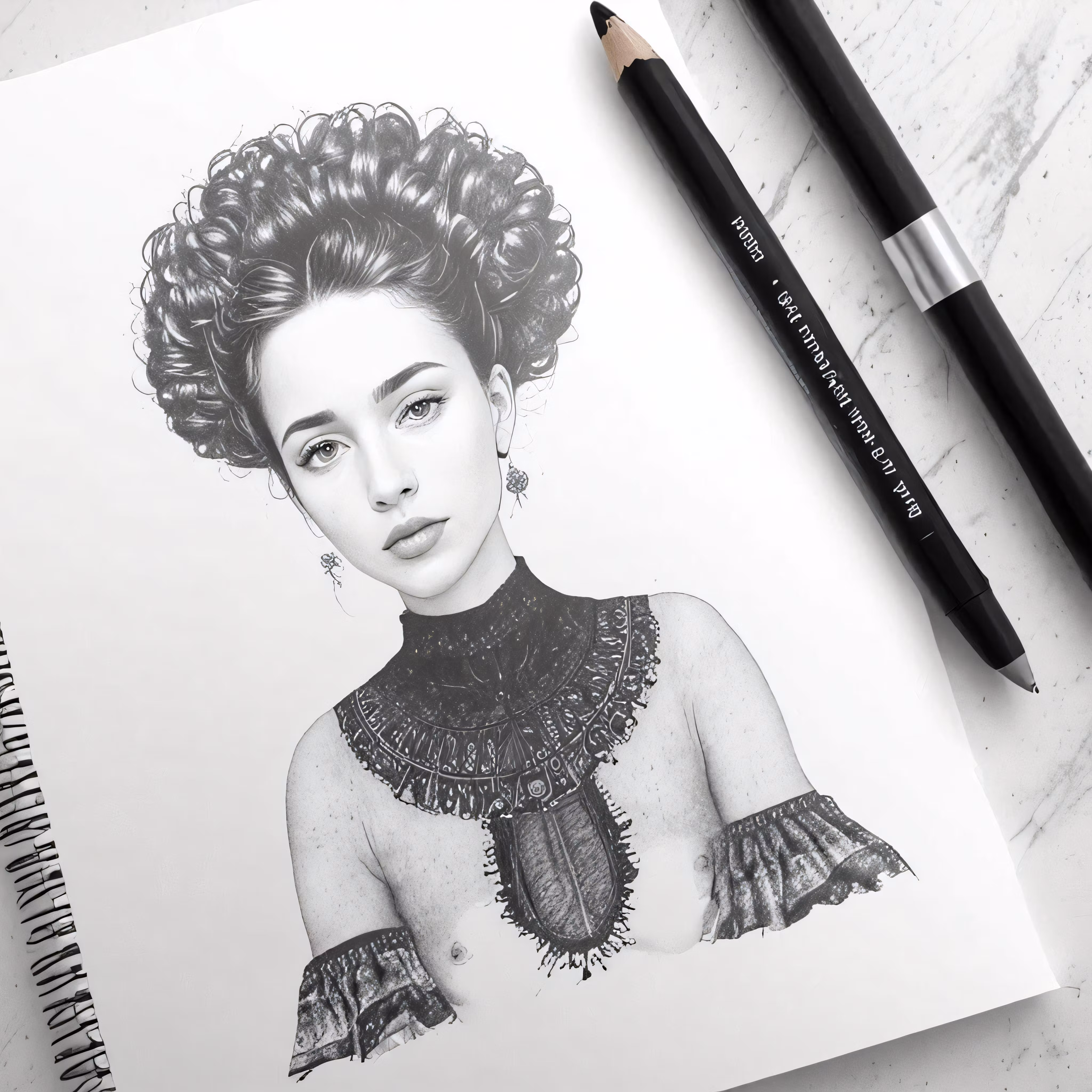 High resolution picture, free to use, a pencil drawing of a woman with afro hair