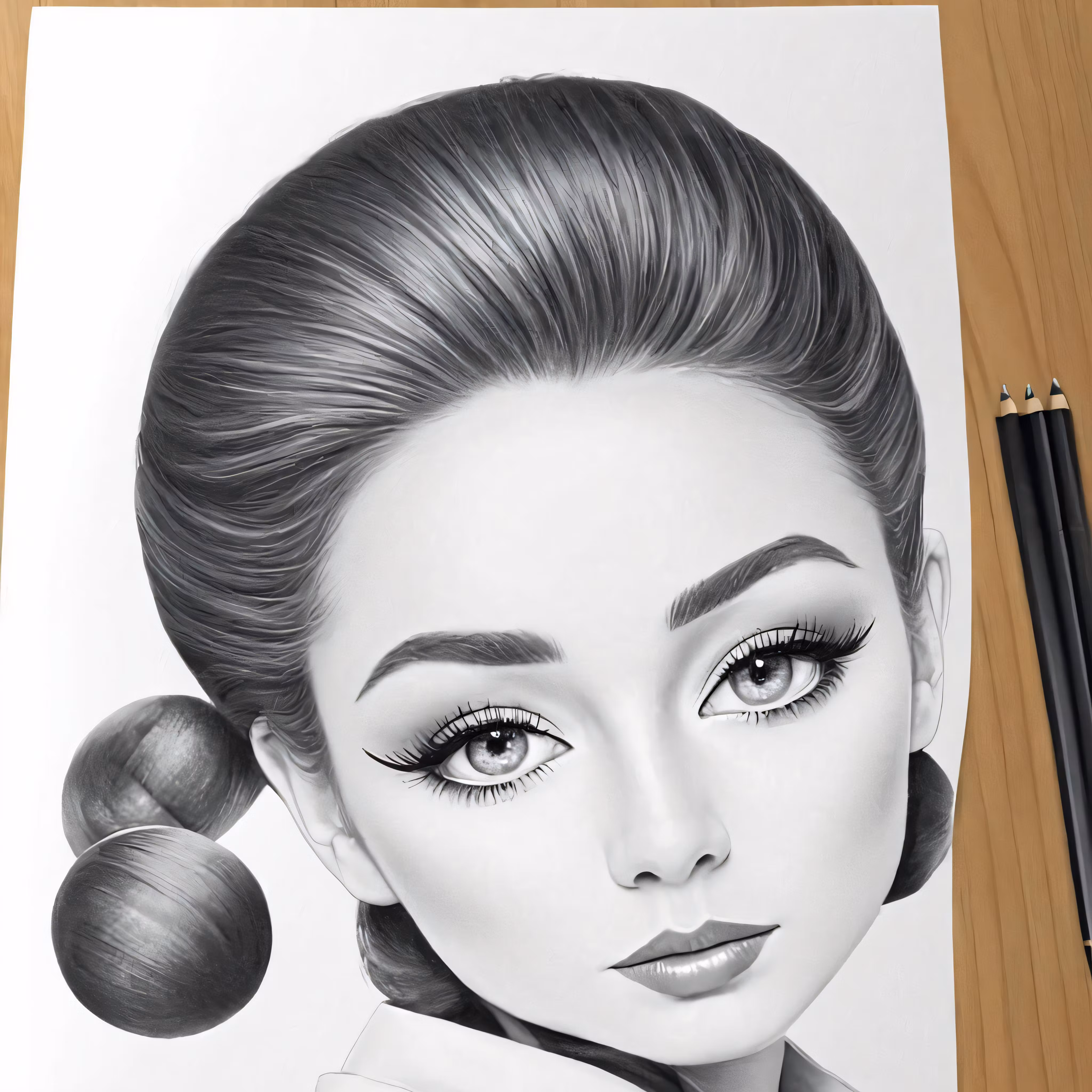 High resolution picture, free to use, a pencil drawing of a woman with big eyes