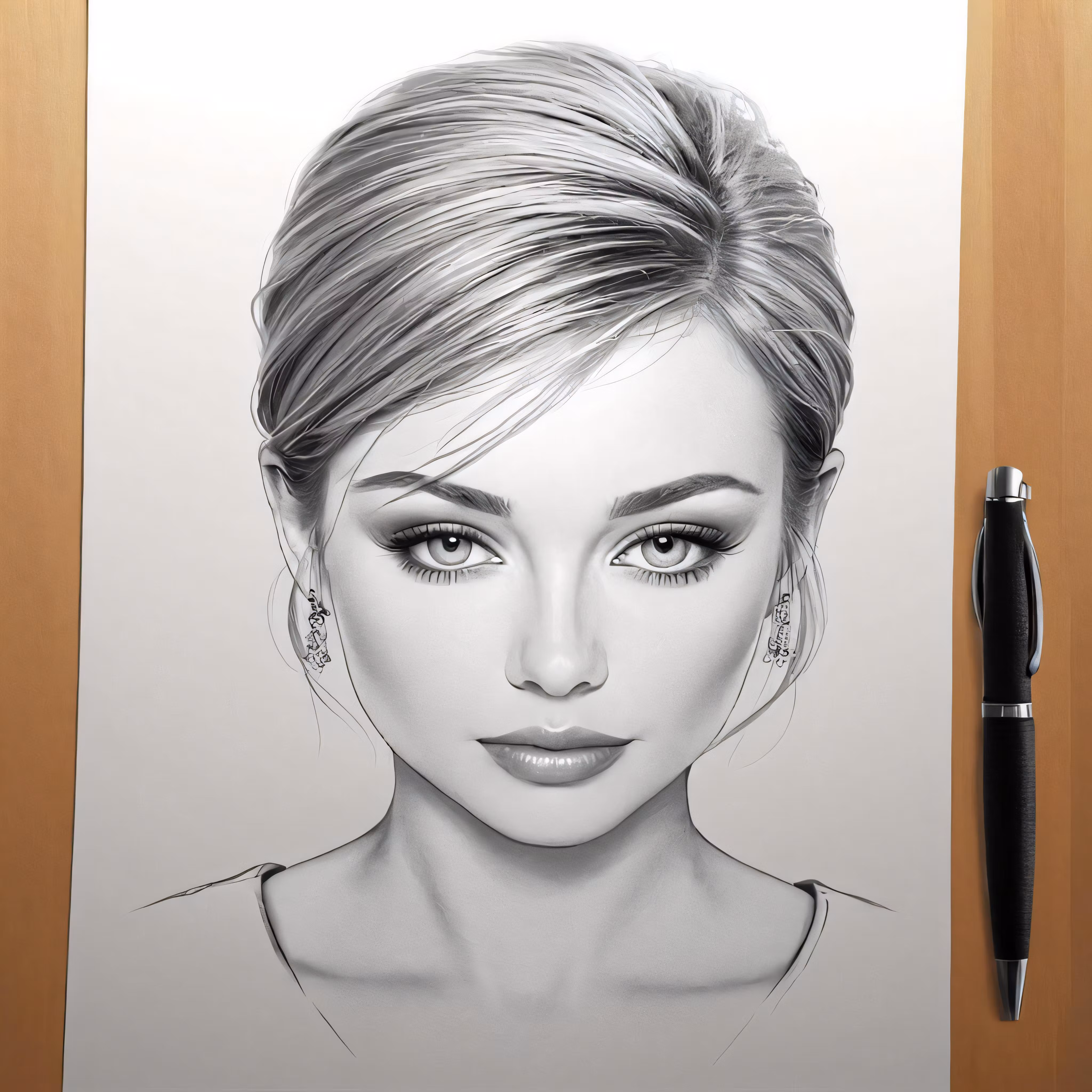 High resolution picture, free to use, a pencil drawing of a woman with blonde hair and wearing a pair of earrings