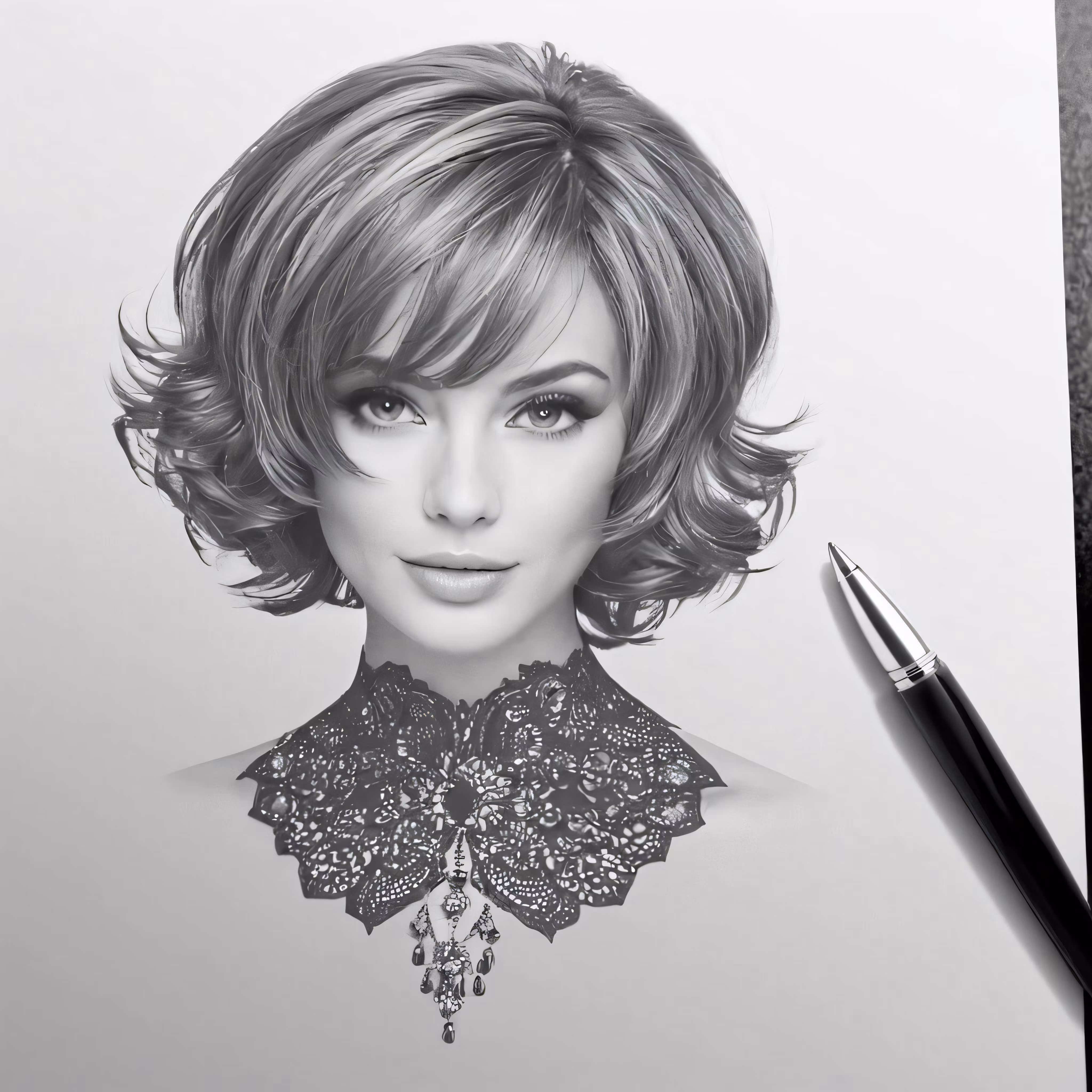 High resolution picture, free to use, a pencil drawing of a woman with short hair