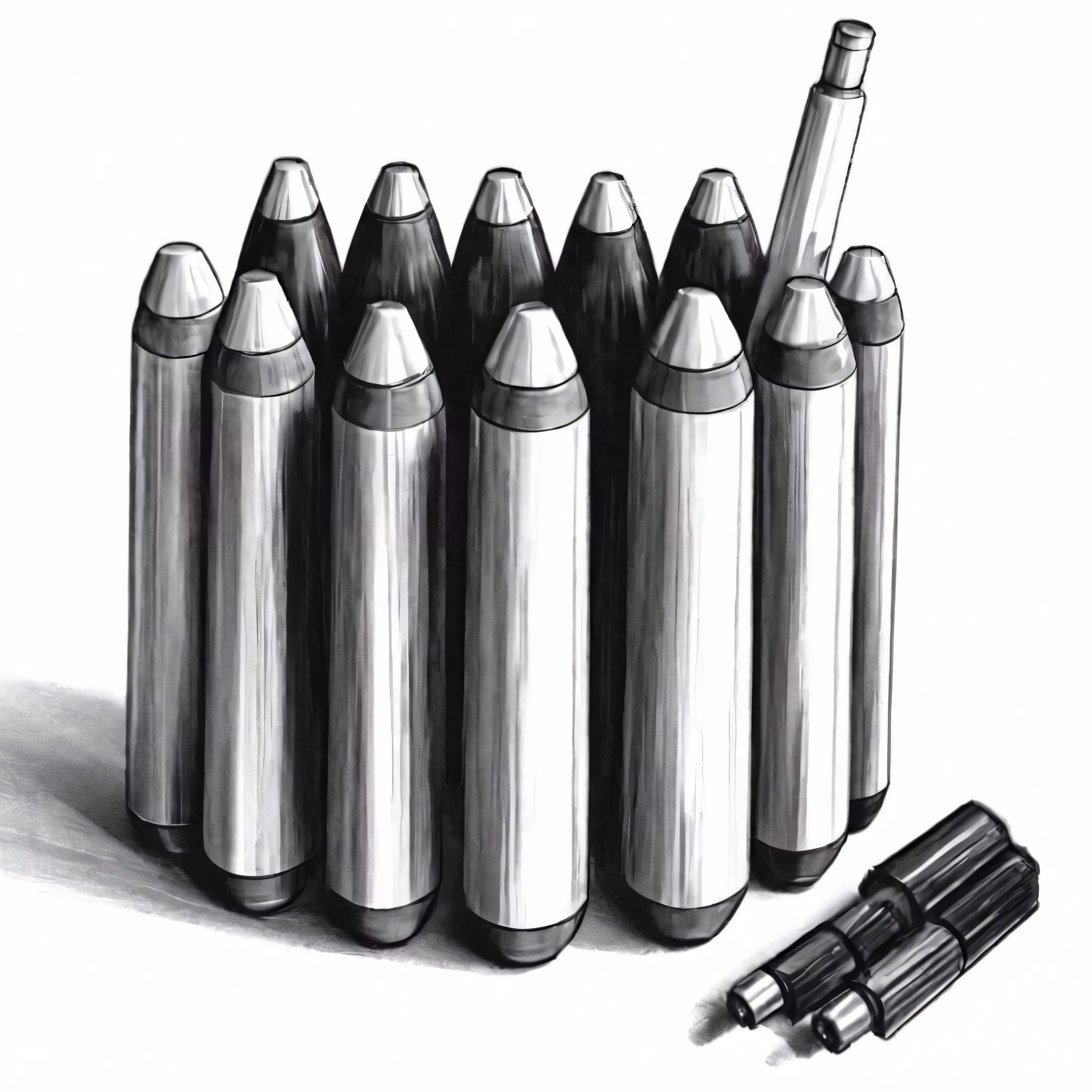 High resolution picture, free to use, a pencil drawing of eight bullet sets with one with a pen