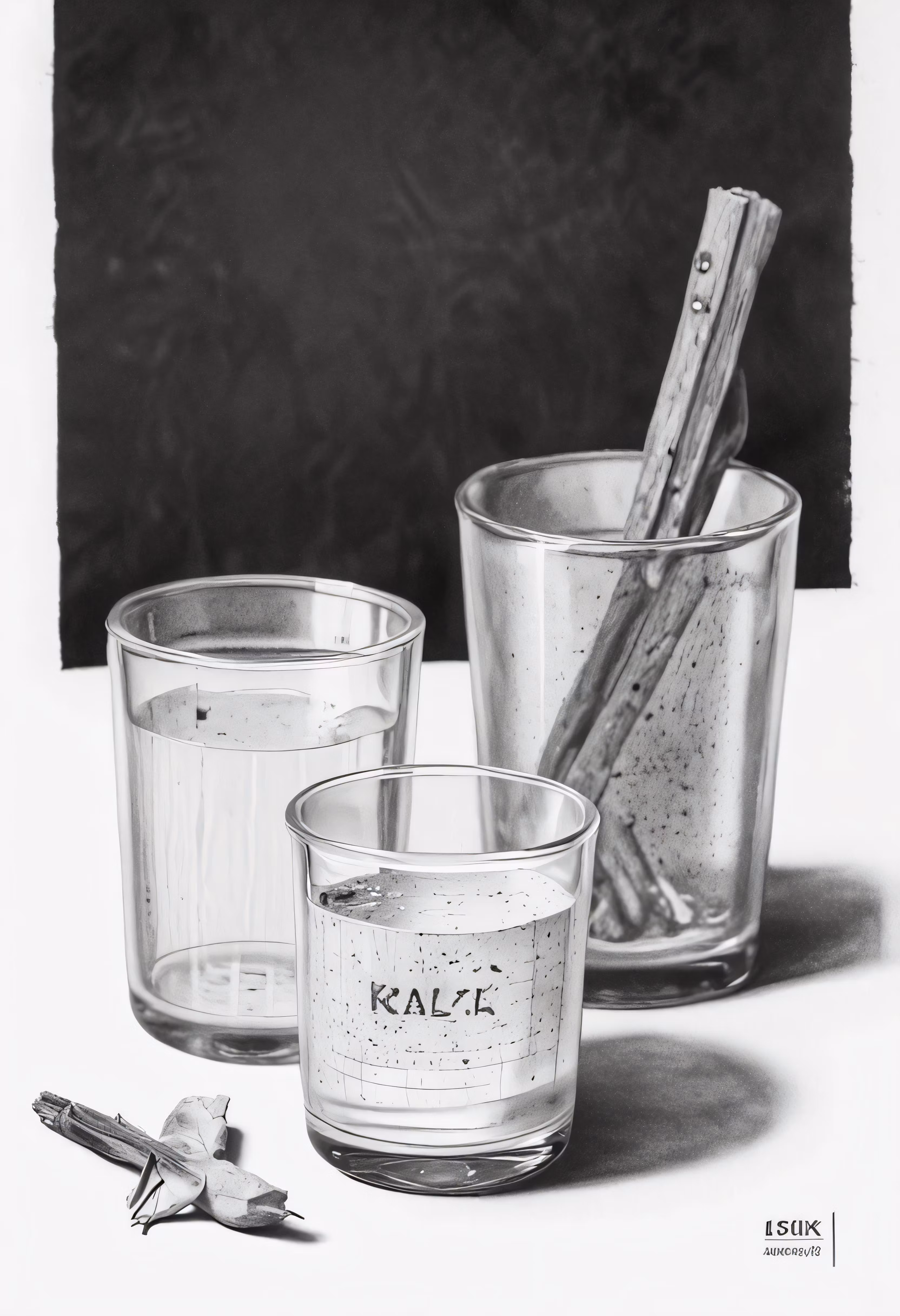 High resolution picture, free to use, a pencil drawing of two clear glass candle holders with silverware