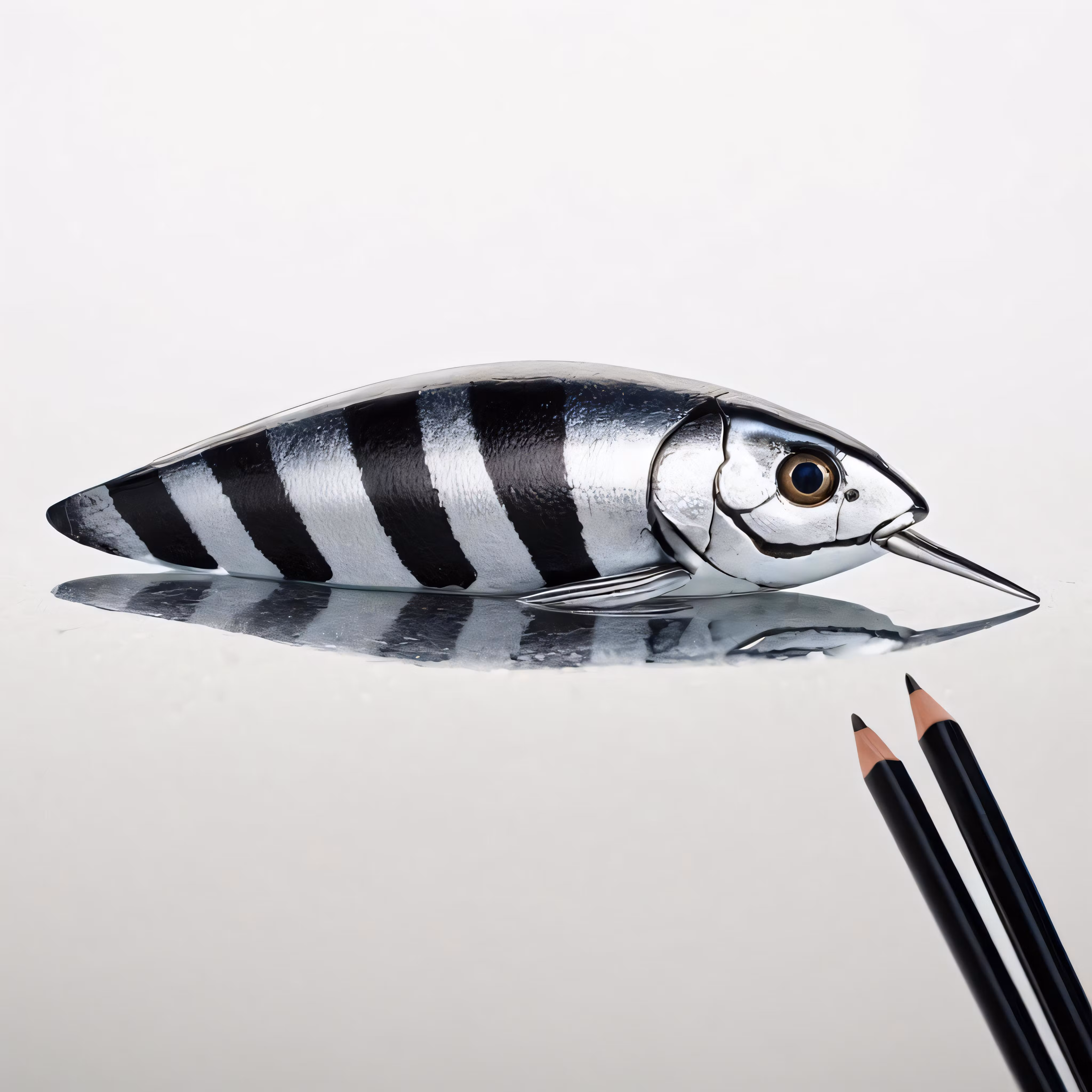 High resolution picture, free to use, a pencil that has been placed in a fish figure