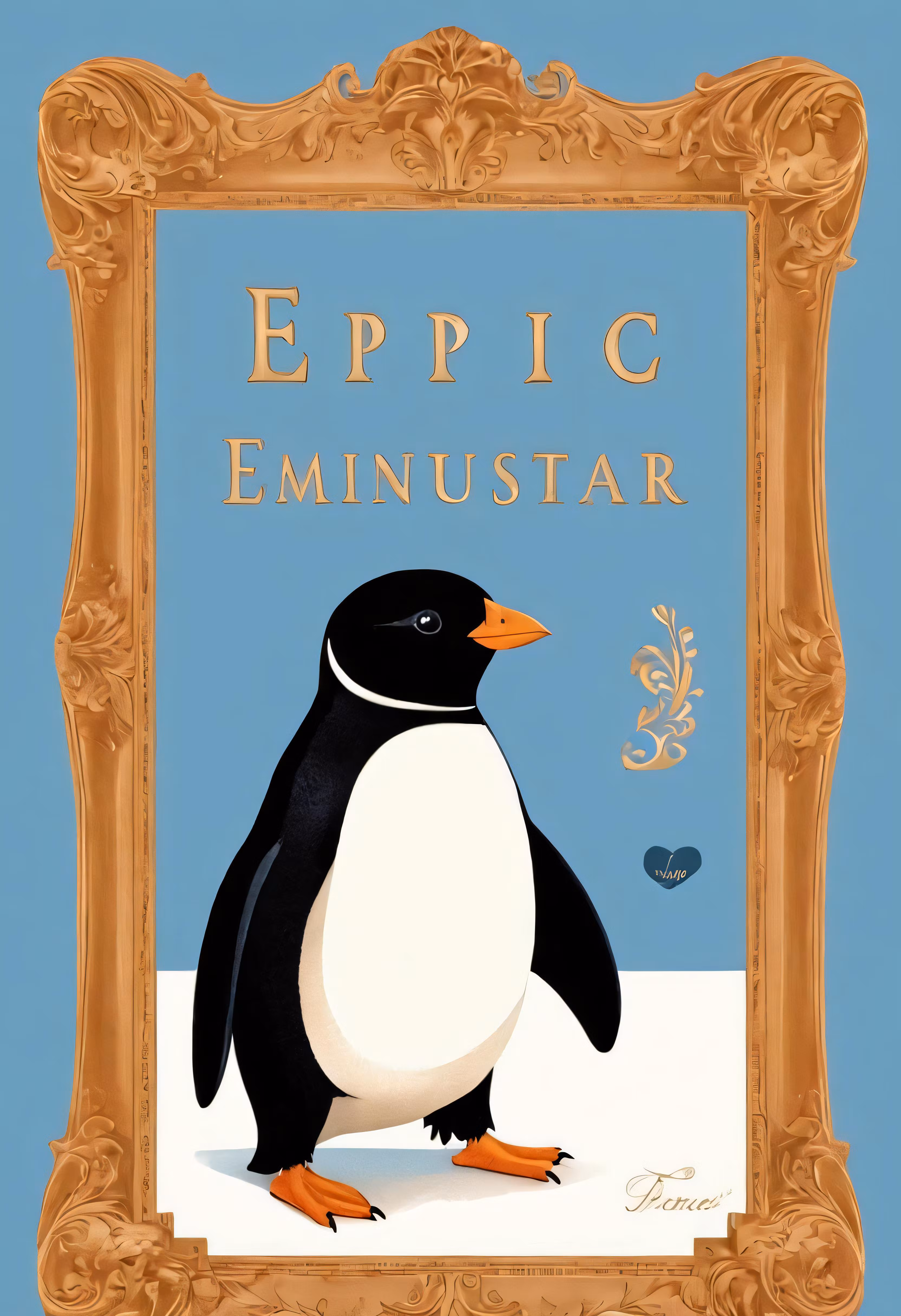 High resolution picture, free to use, a penguin is sitting in the snow while its name is effic