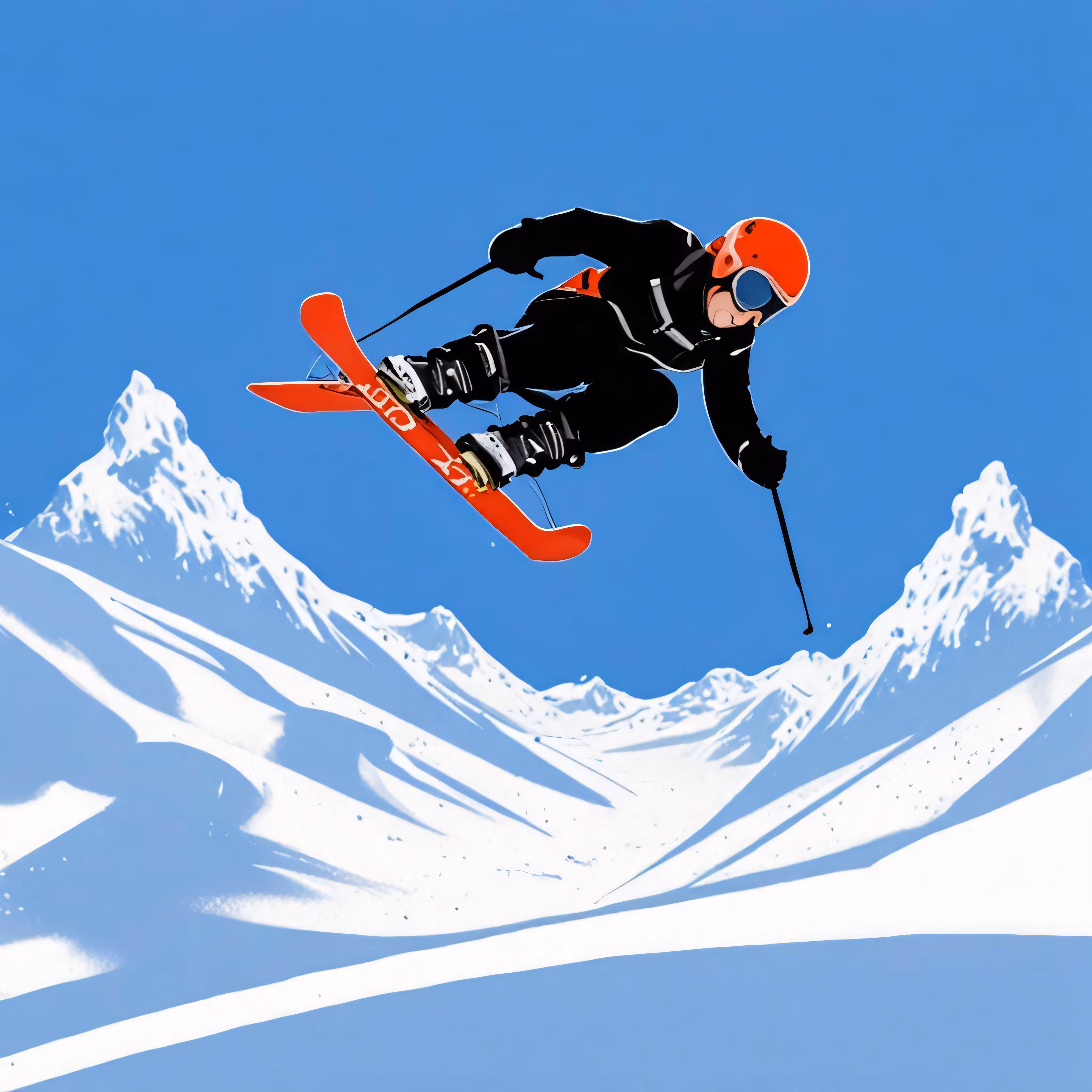 High resolution picture, free to use, a person flying through the air while riding skis