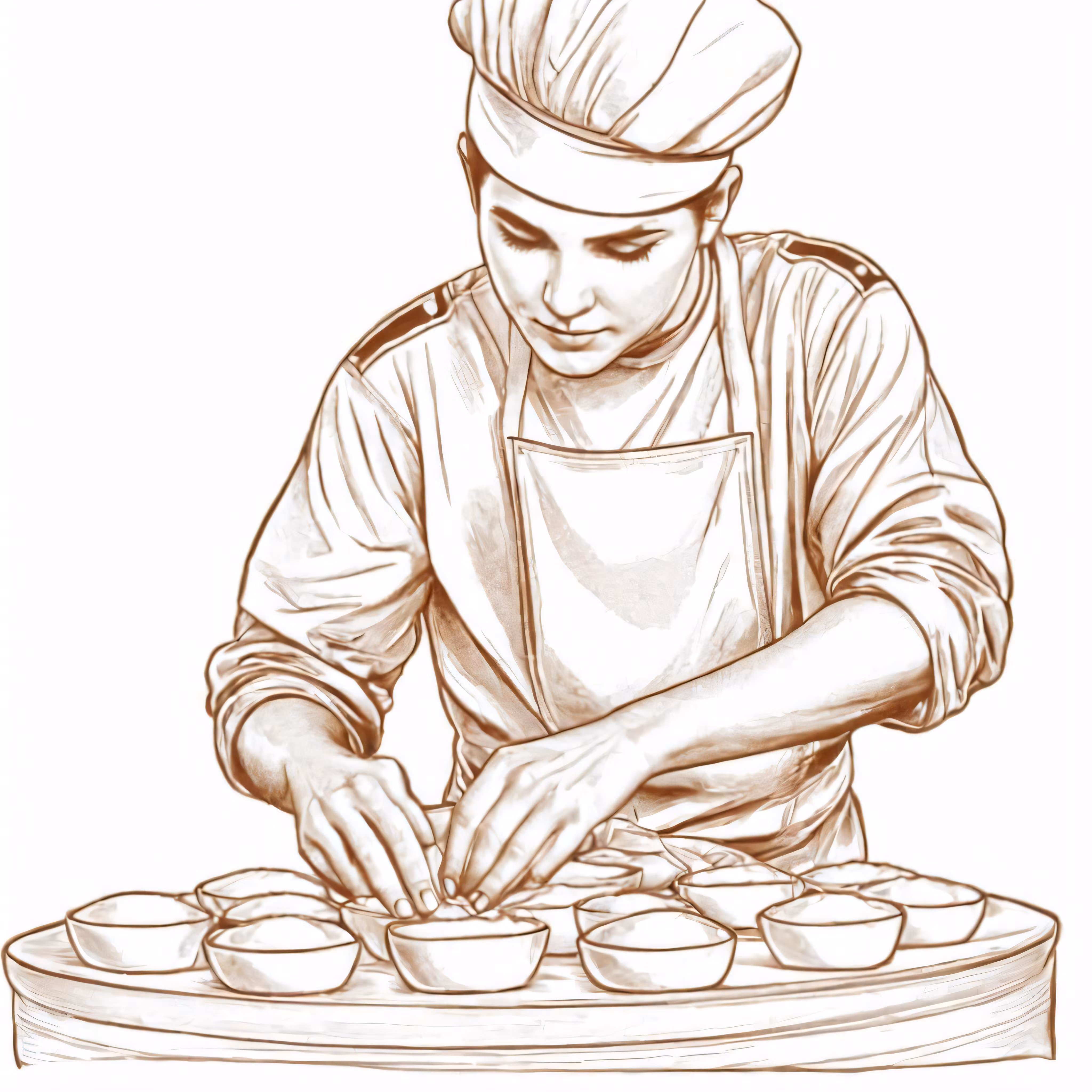 High resolution picture, free to use, a person in an apron baking cupcakes on a tray