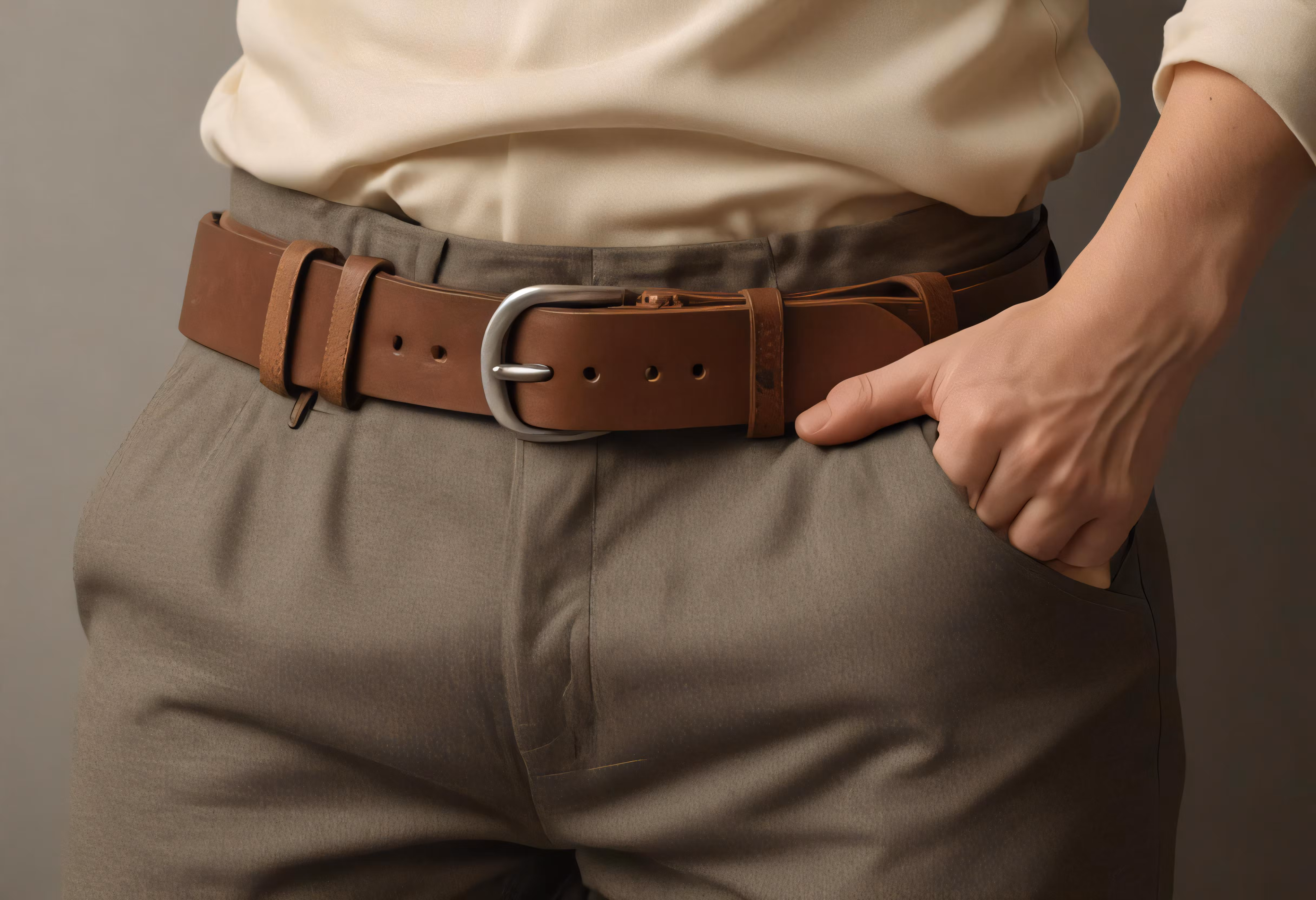 High resolution picture, free to use, a person in beige shirt holding a tan belt