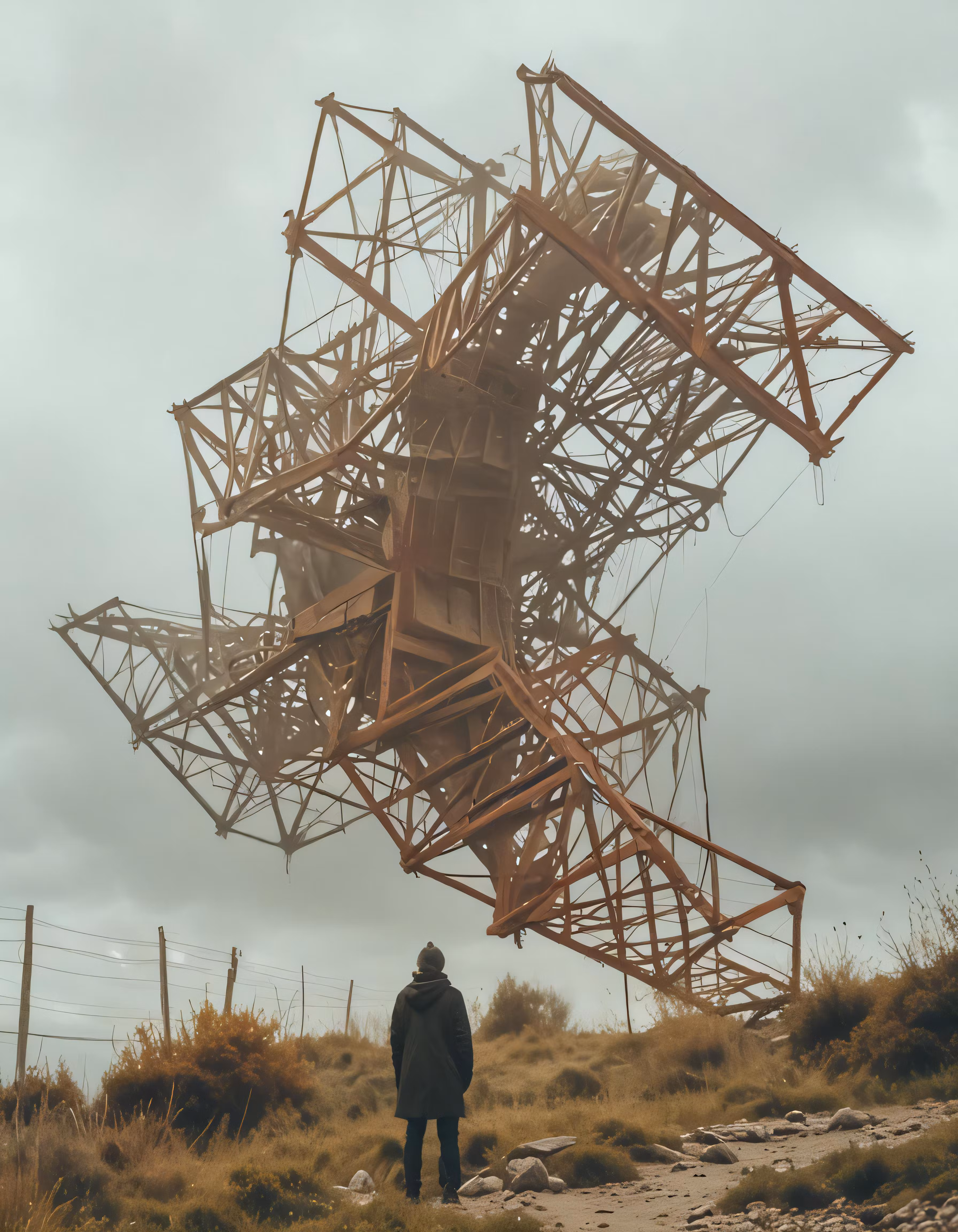 High resolution picture, free to use, a person in dark clothing standing in front of a structure