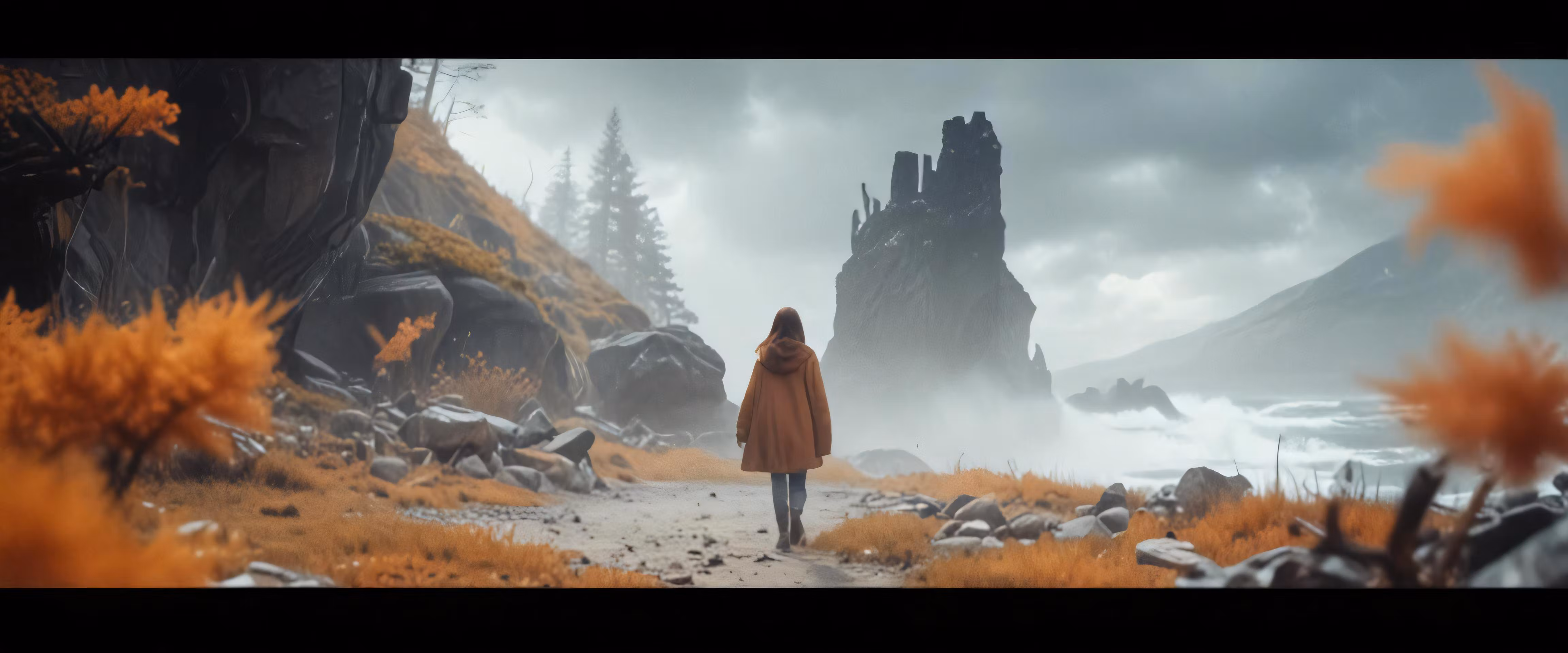 High resolution picture, free to use, a person is standing near a large waterfall in a foggy area