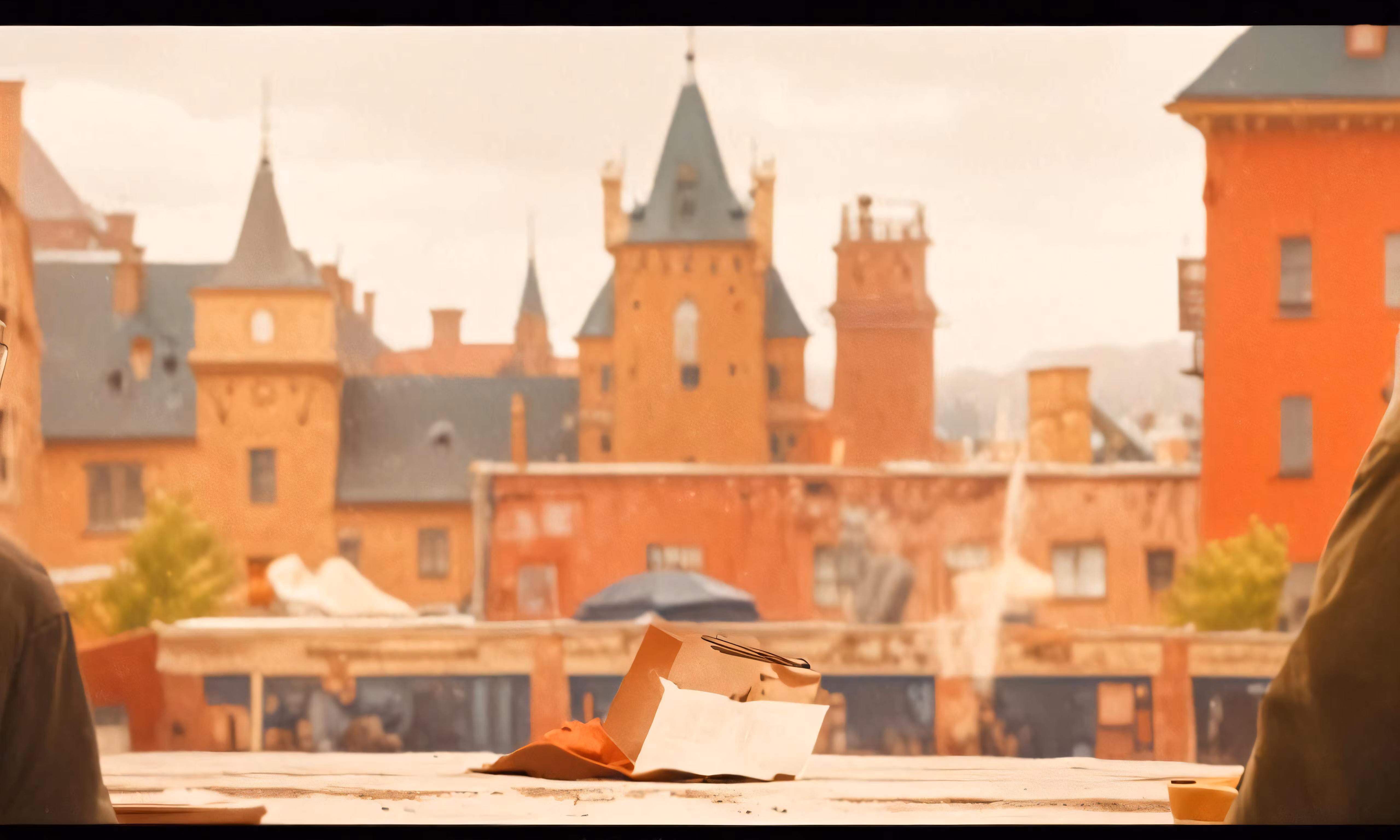 High resolution picture, free to use, a person looking over a rooftop at the old city