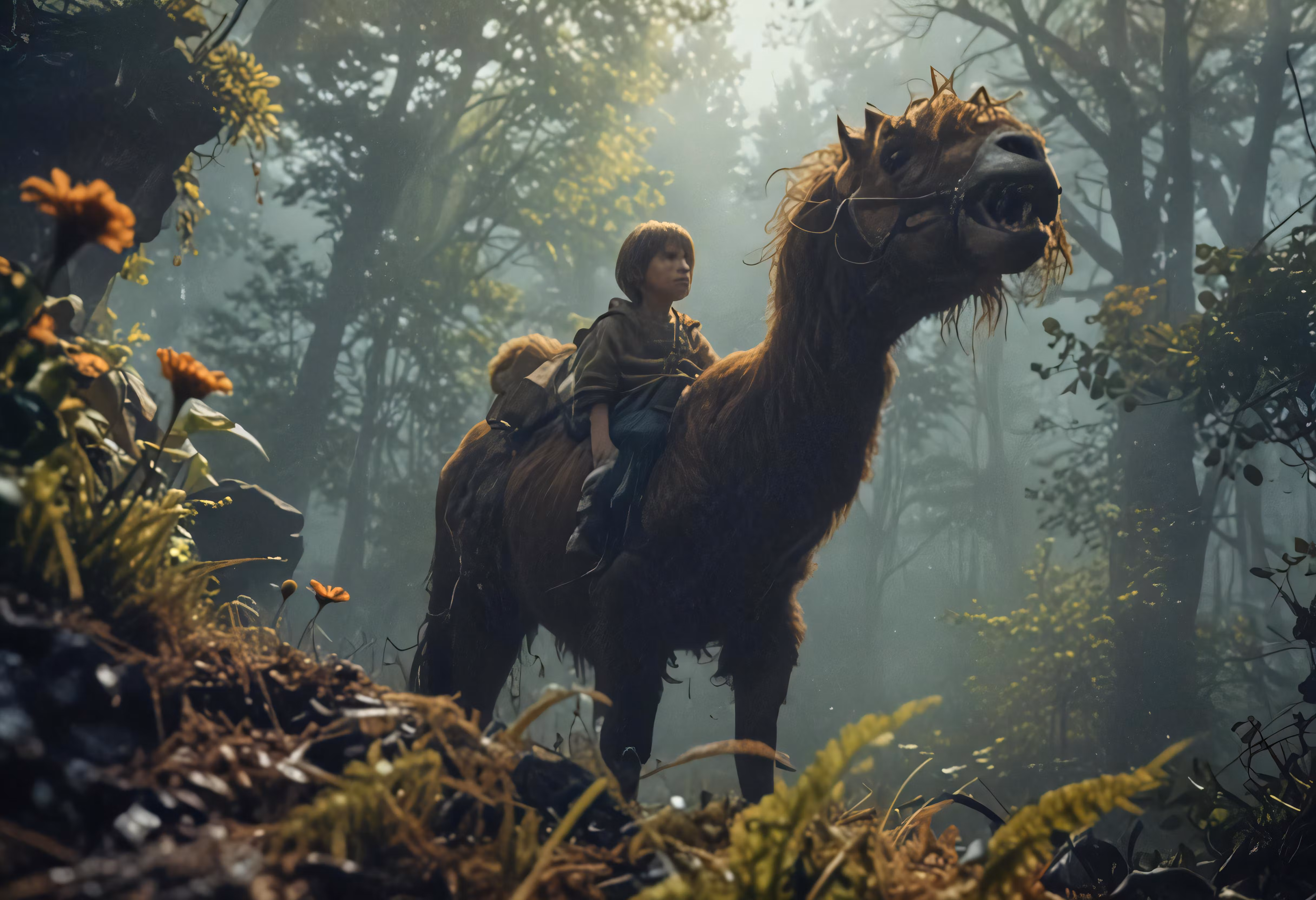 High resolution picture, free to use, a person on a small animal walking in a field