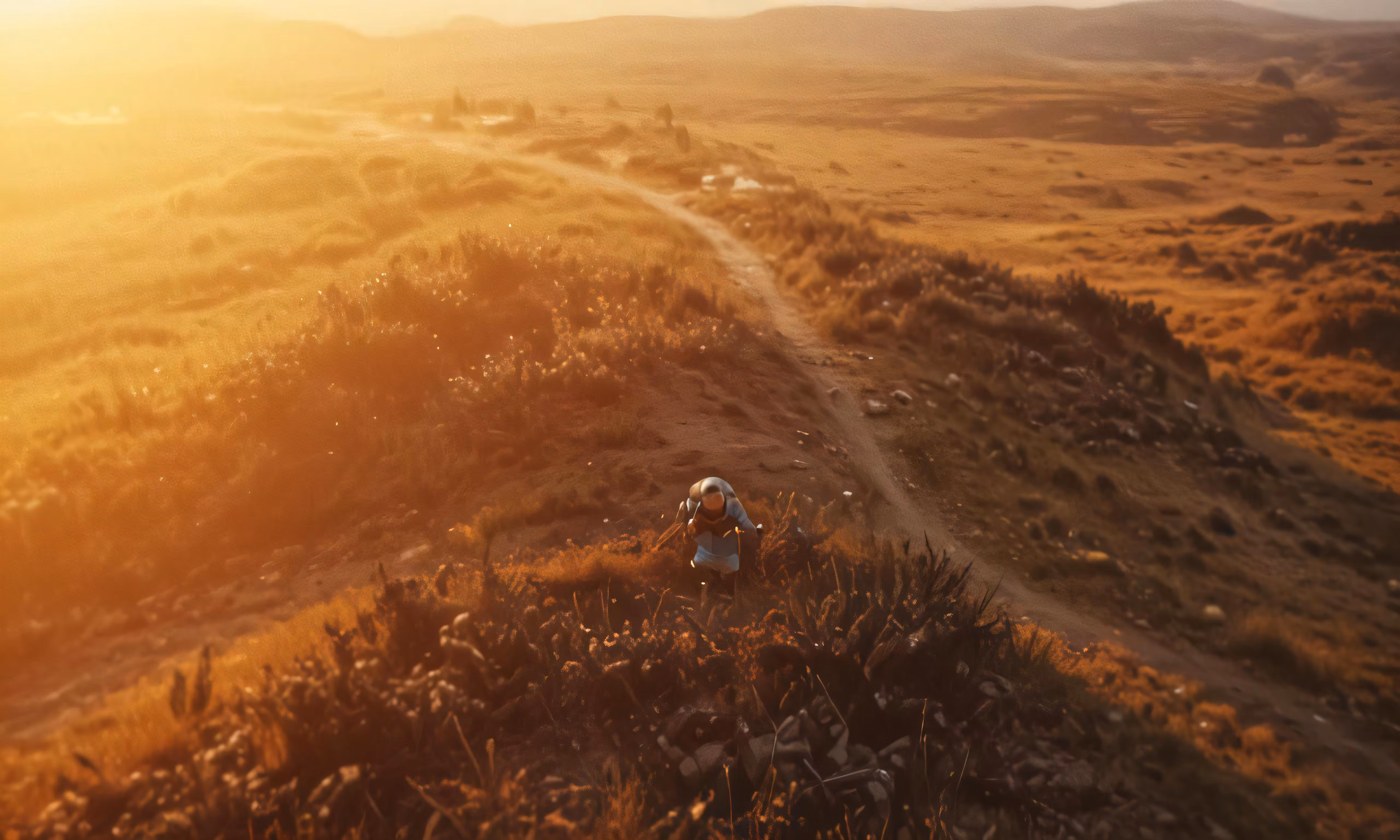 High resolution picture, free to use, a person riding a mountain bike down a country road