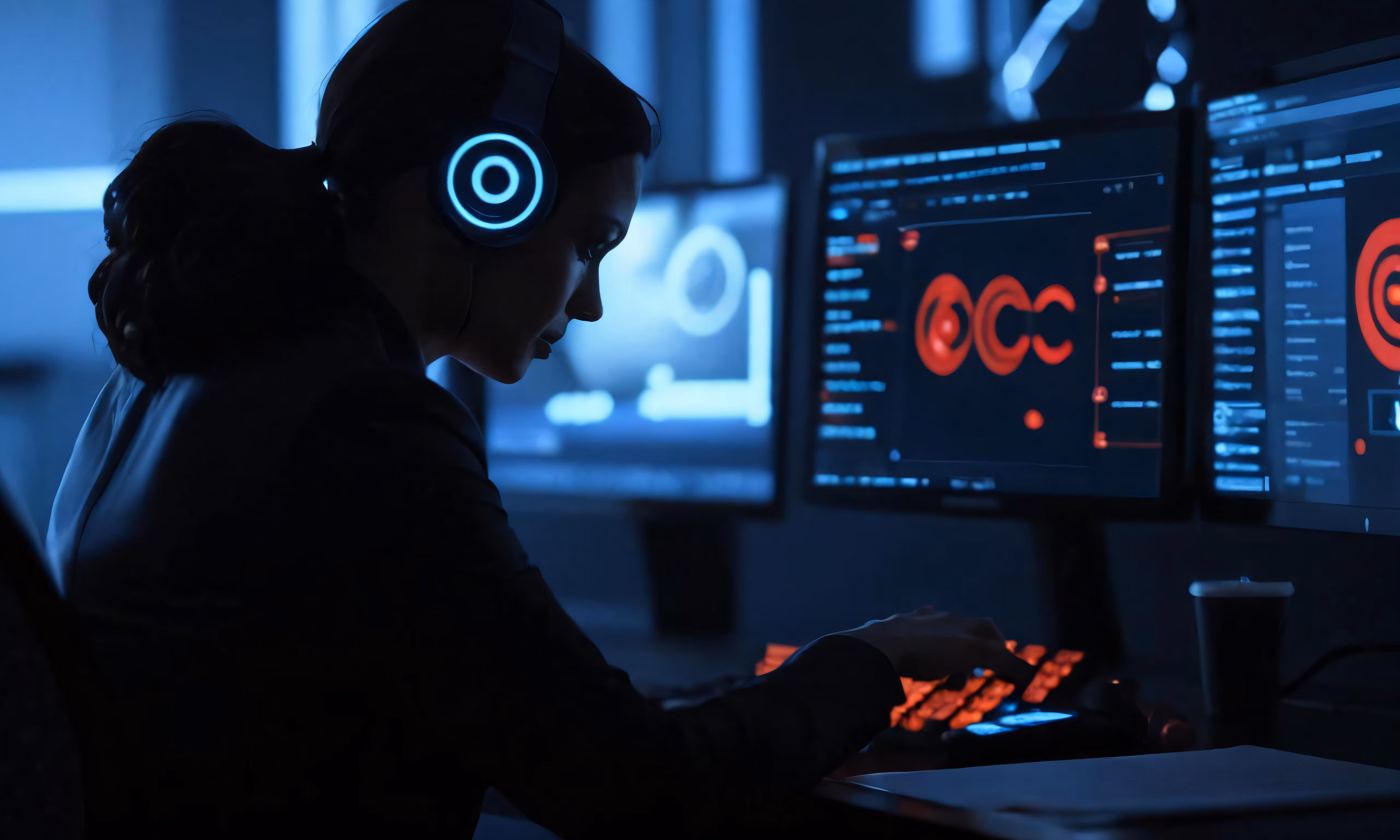 High resolution picture, free to use, a person sitting at a desk with a pair of headphones