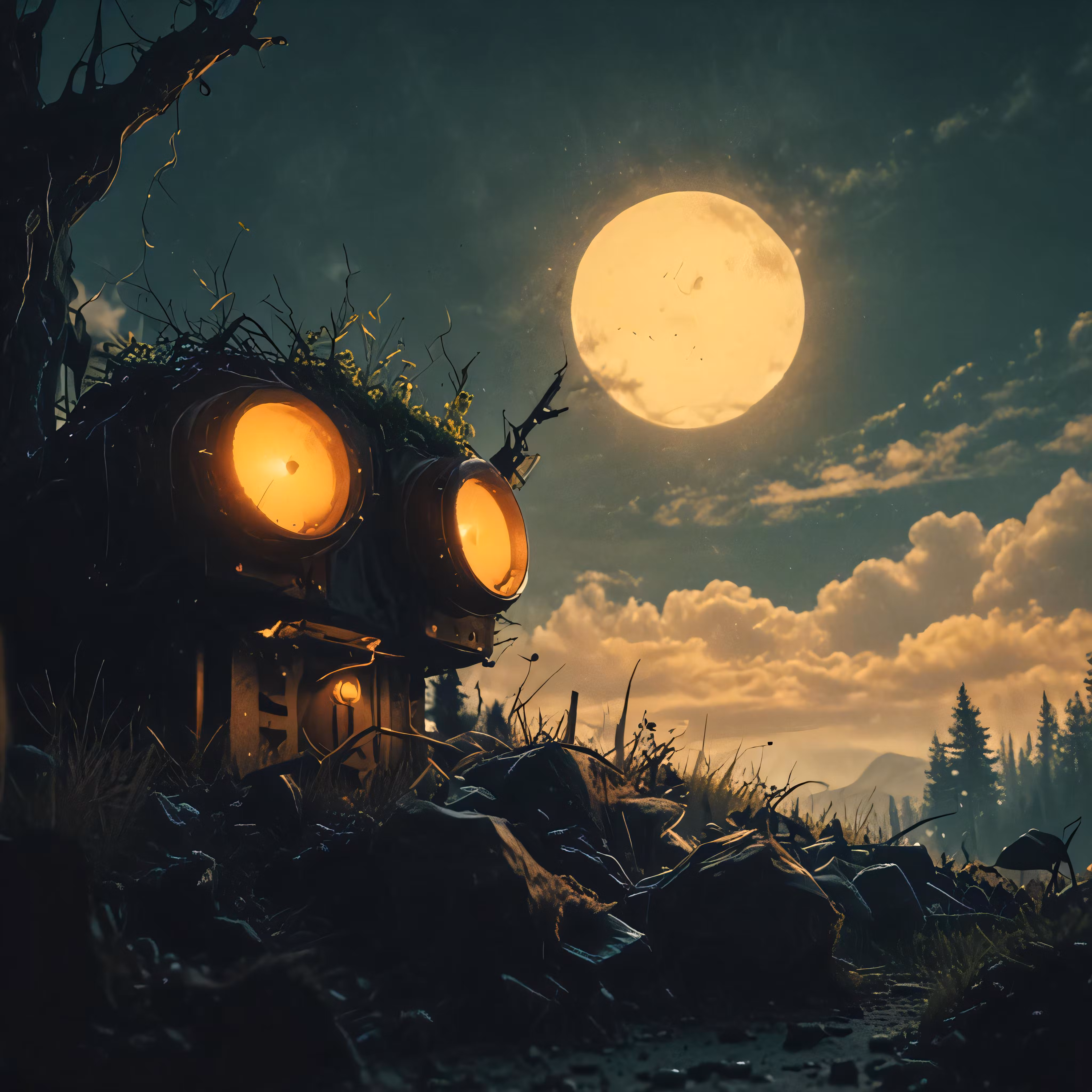 High resolution picture, free to use, a person sitting on a bench under a full moon