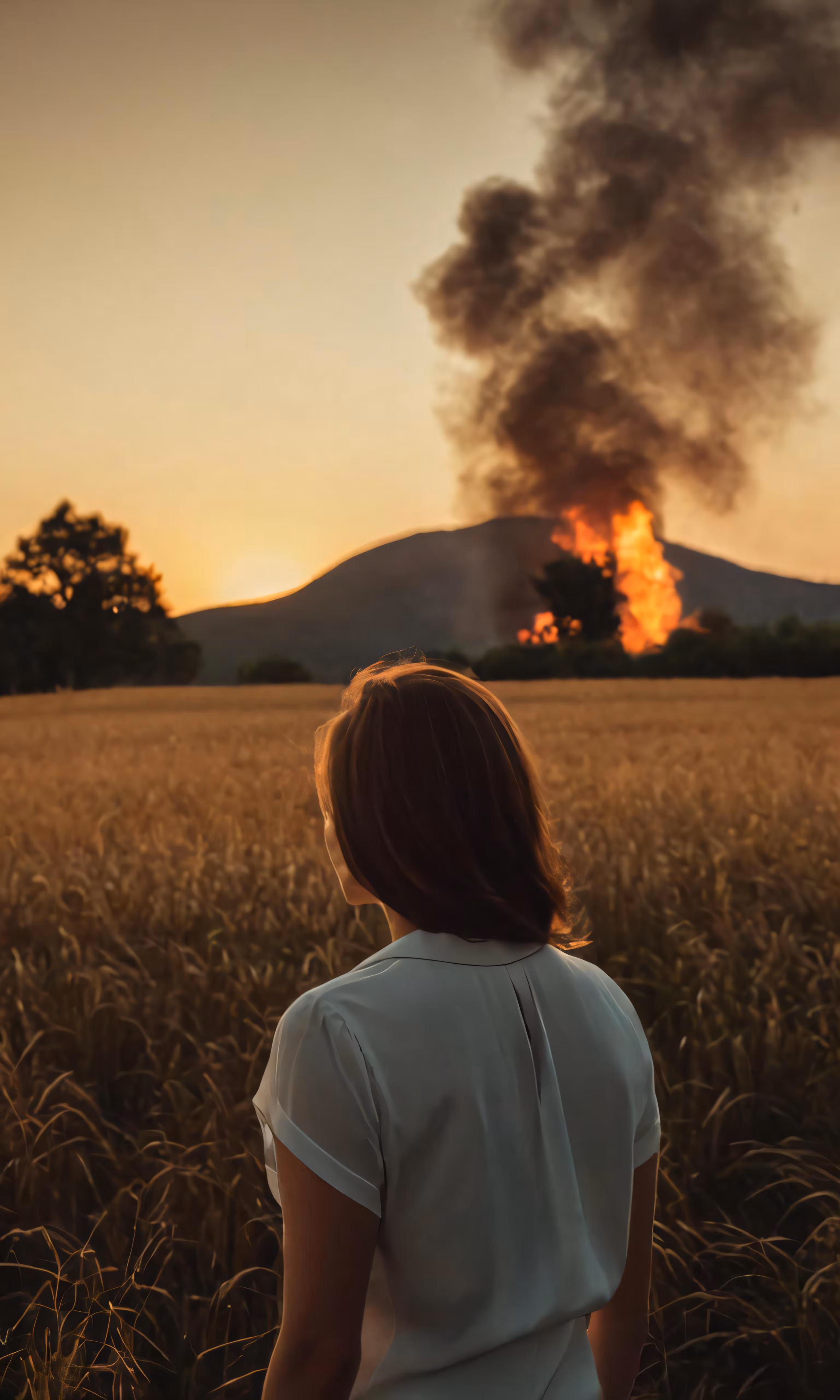 High resolution picture, free to use, a person standing in front of a large plume of smoke