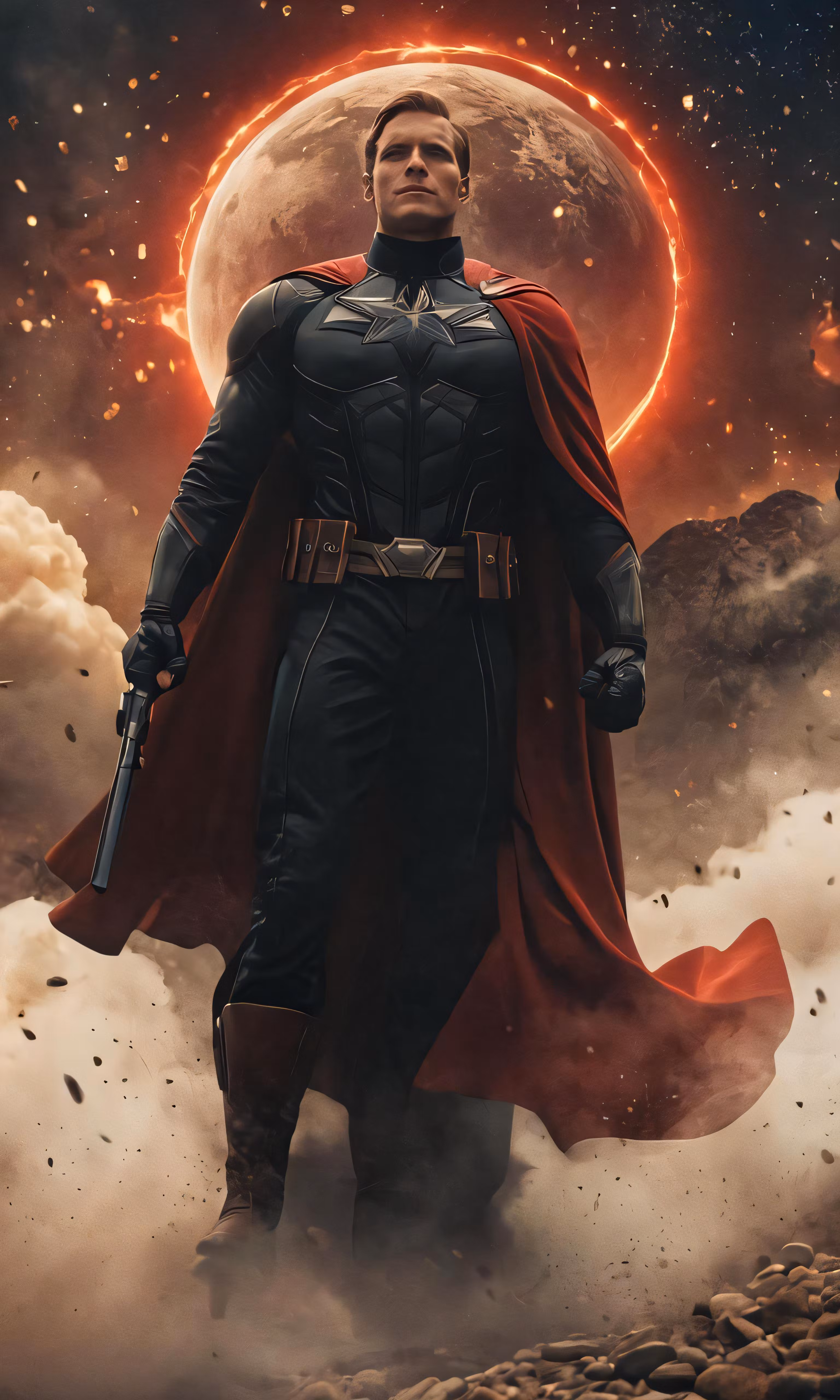 High resolution picture, free to use, a person standing in front of a moon