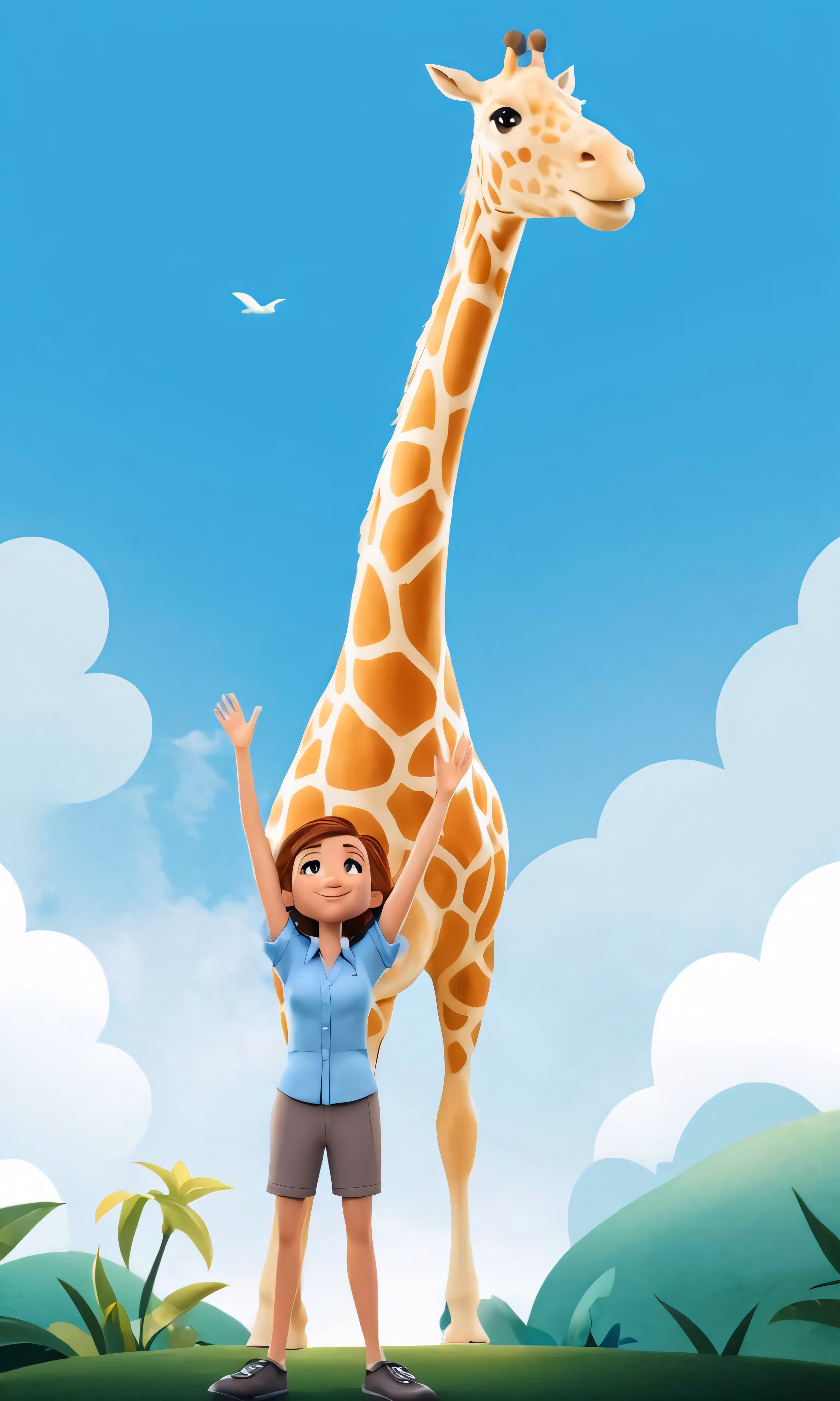 High resolution picture, free to use, a person standing near a giraffe in the forest