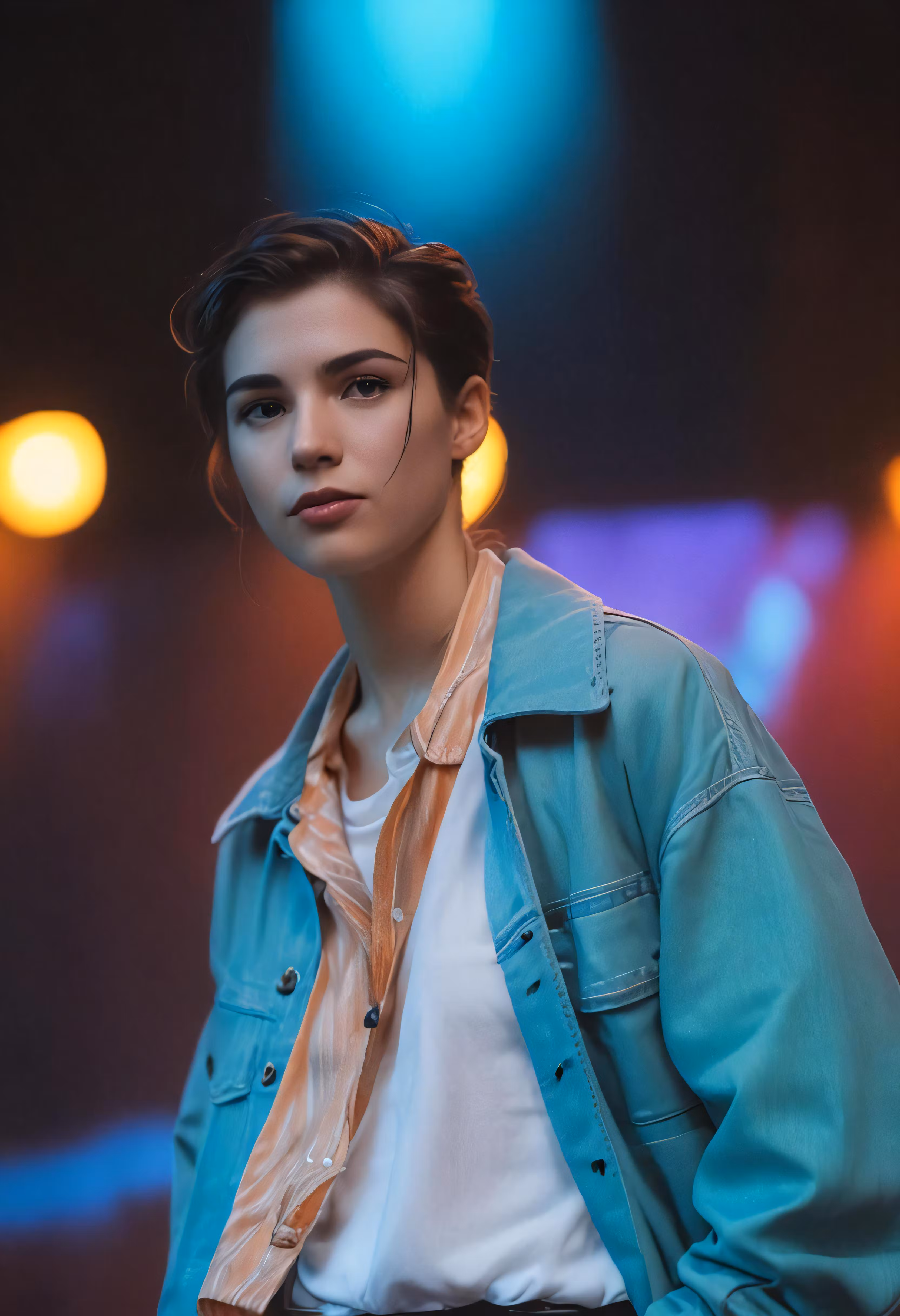 High resolution picture, free to use, a person wearing a blue jean jacket and white shirt