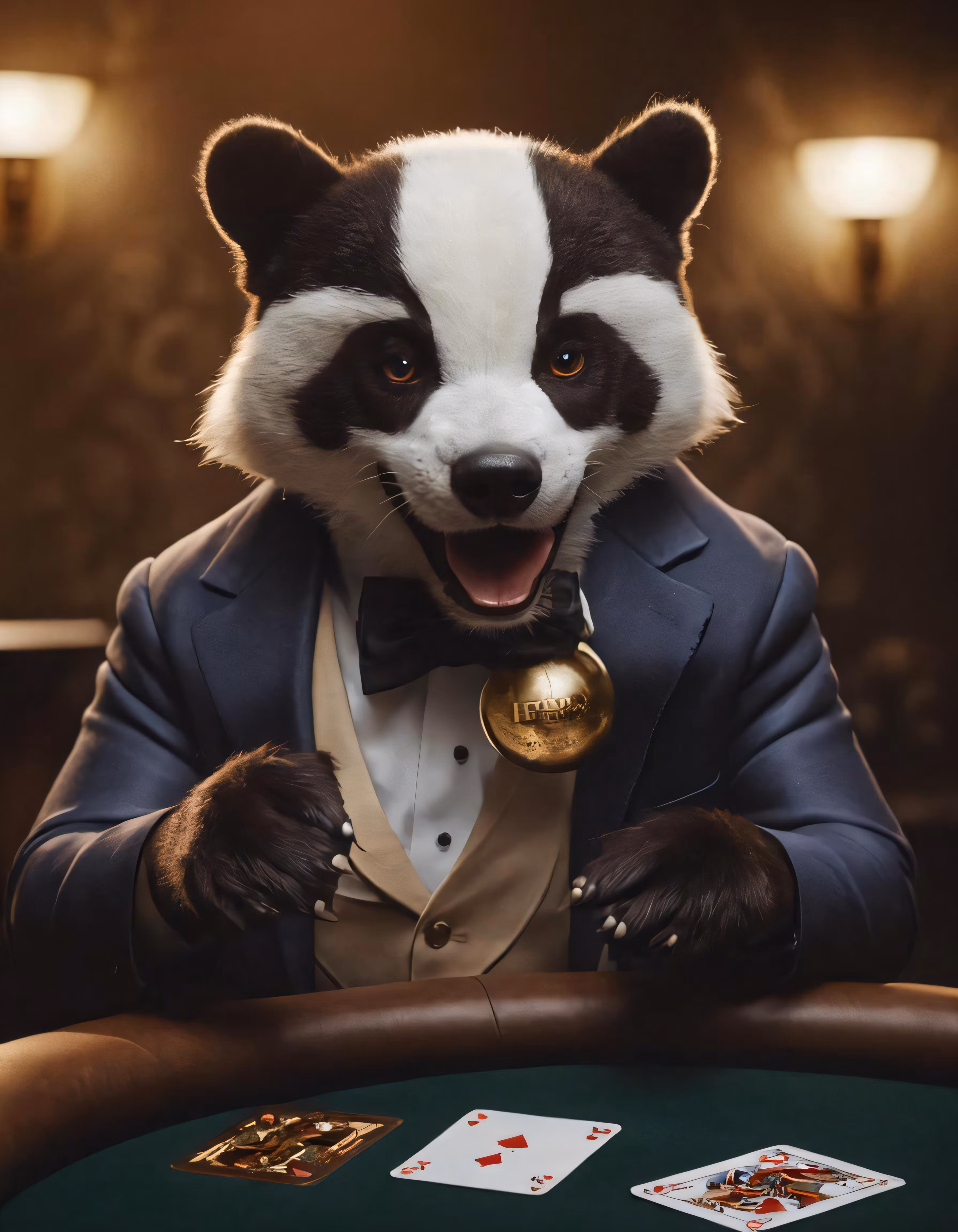 High resolution picture, free to use, a person wearing a suit and tie with a raccoon head